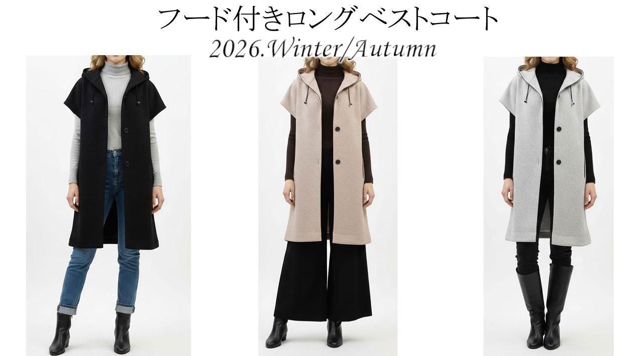 キルティングスリーブ・ツイードポケット ノーカラーコート