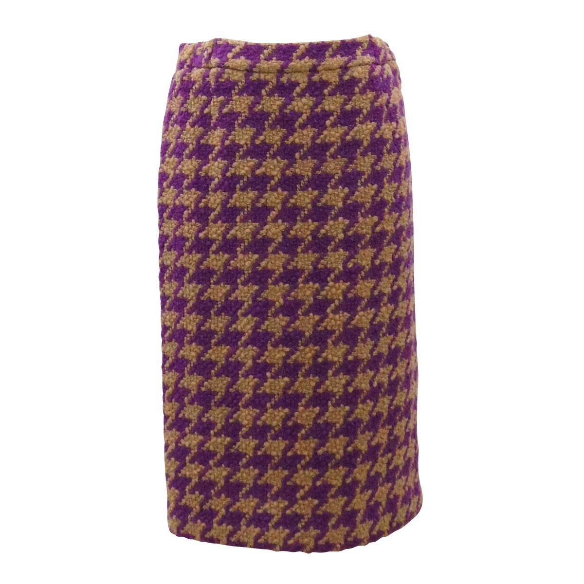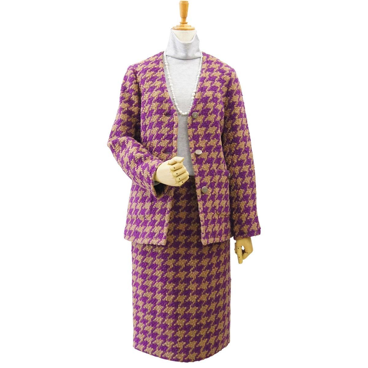 ロービング千鳥格子・ウエストゴム・タイトスカート・パープル