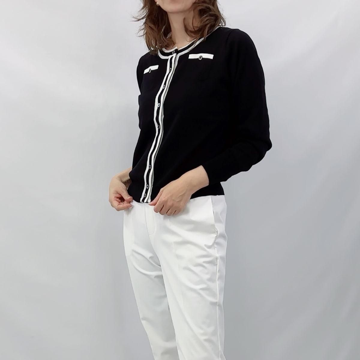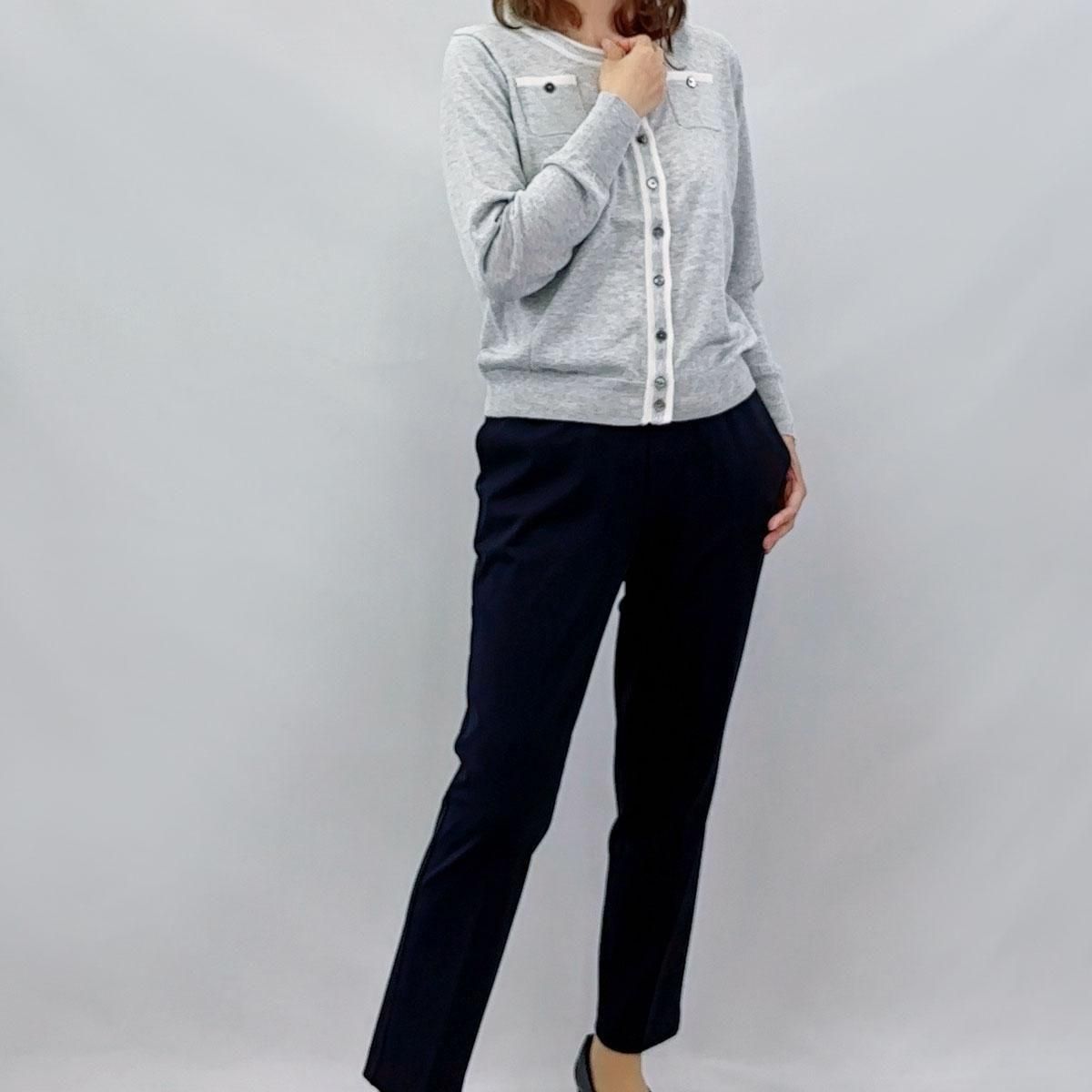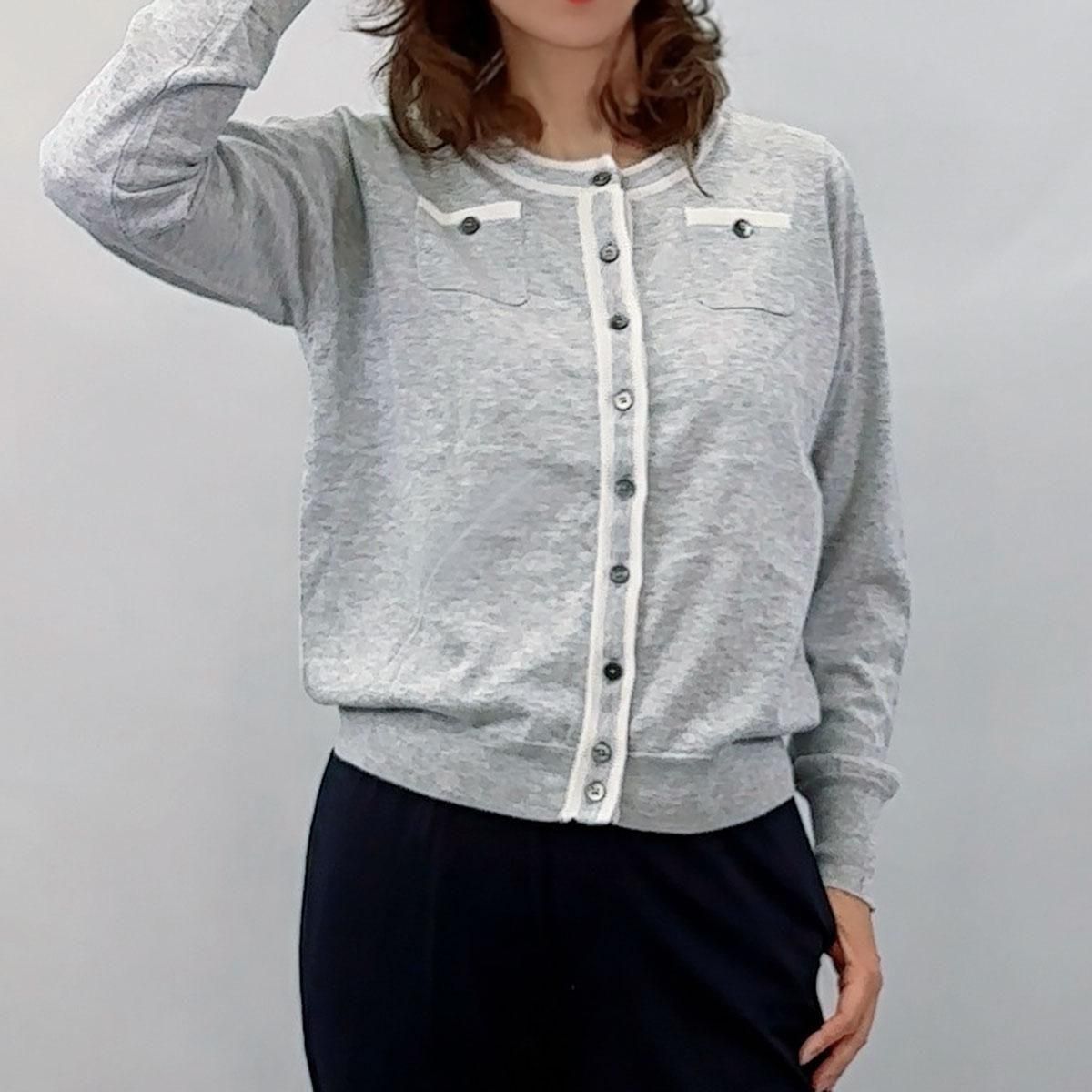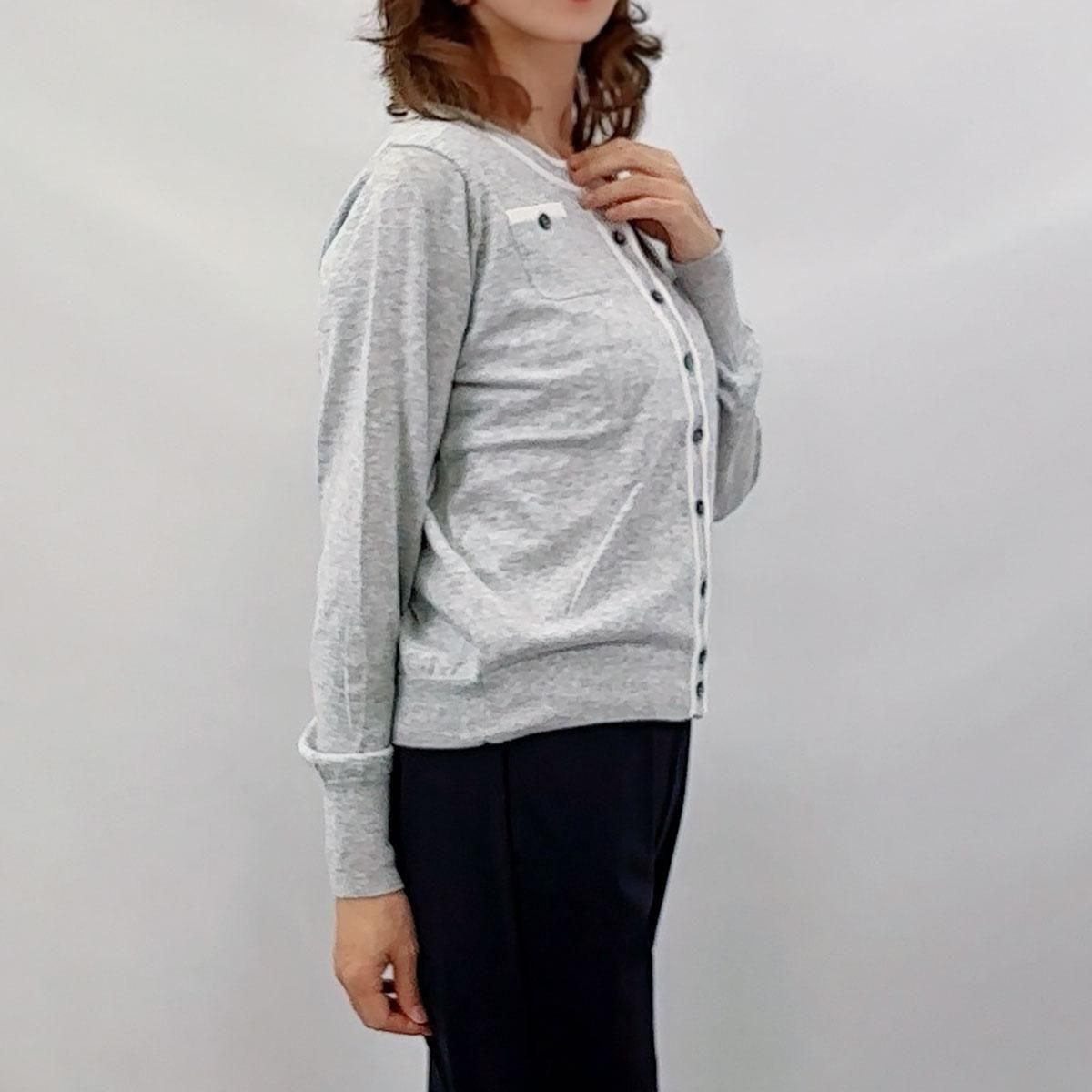 コットン100%・ライン入りクルーネック・カーディガン
