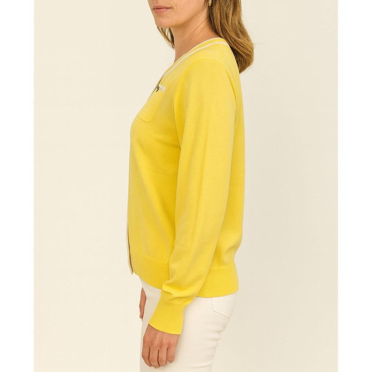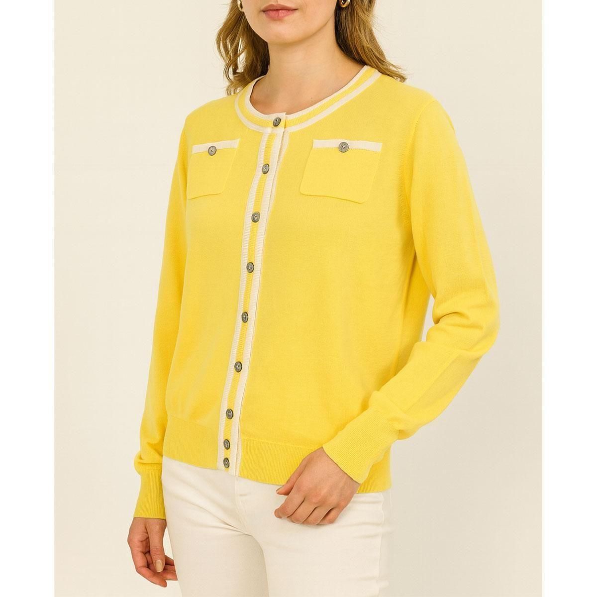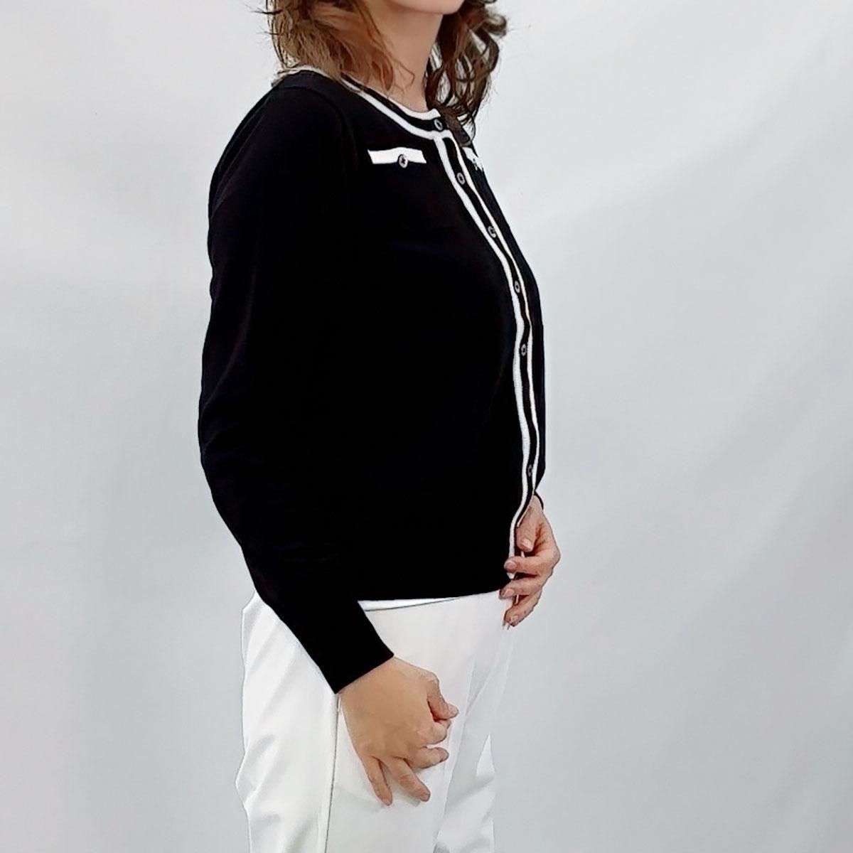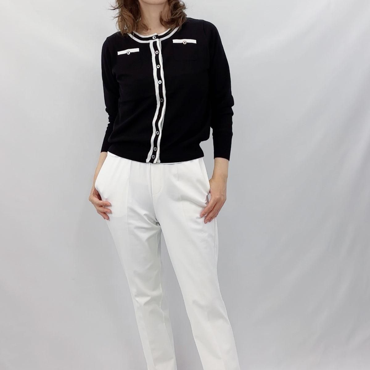 コットン100%・ライン入りクルーネック・カーディガン