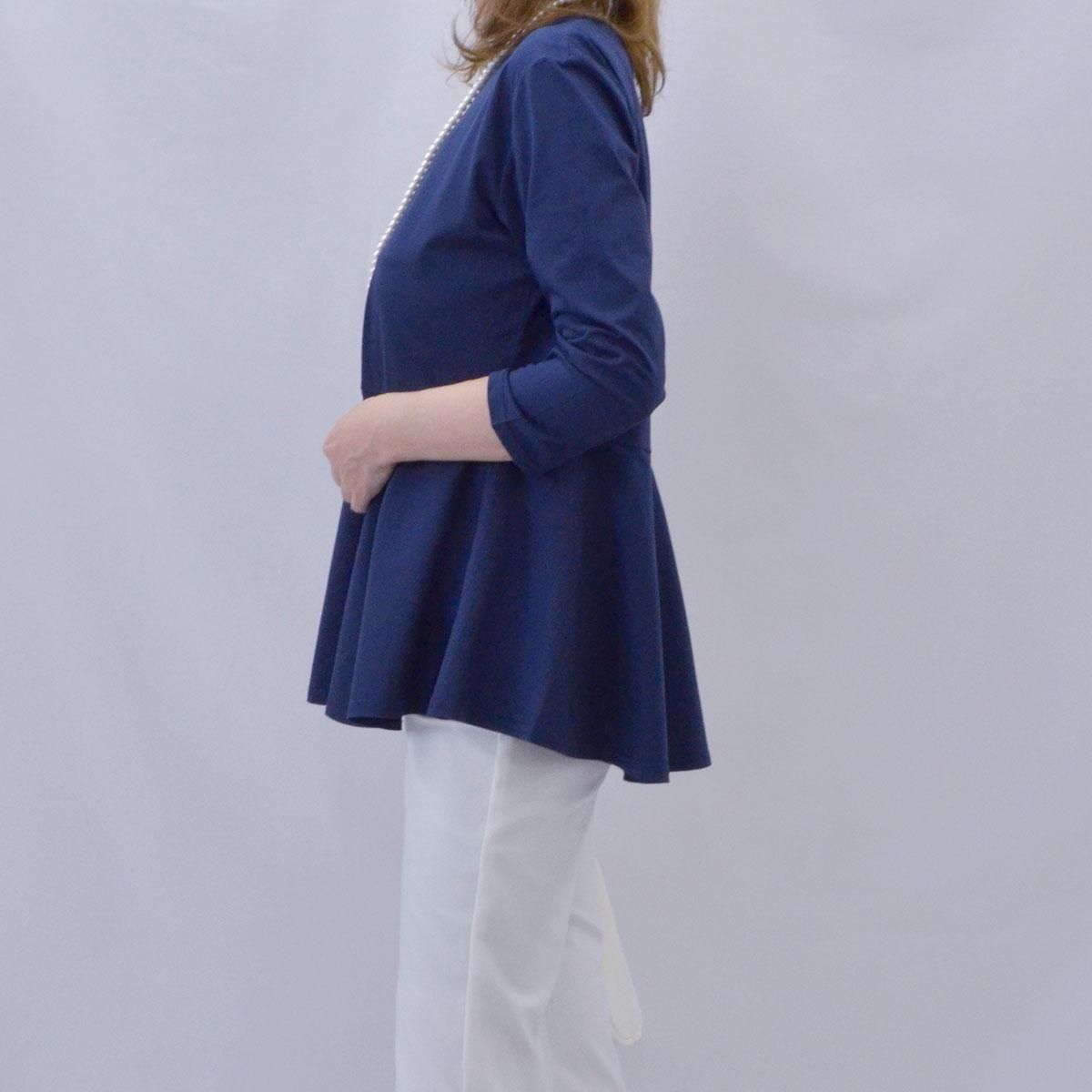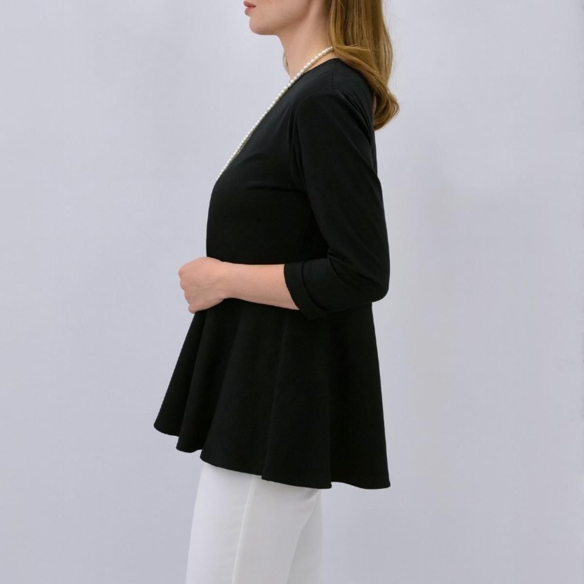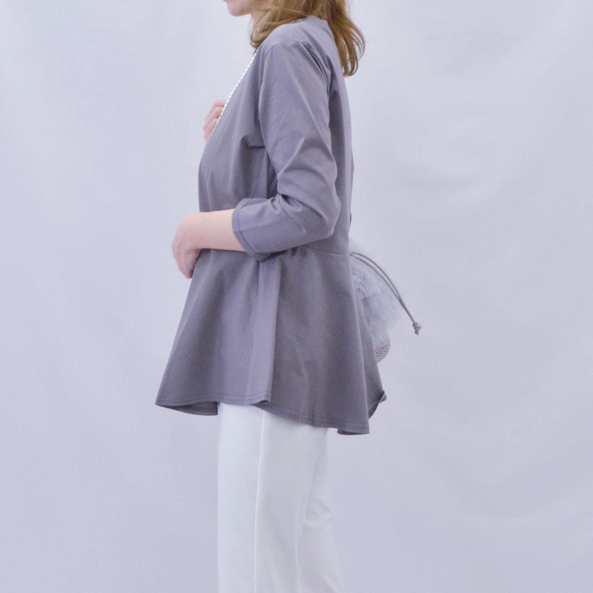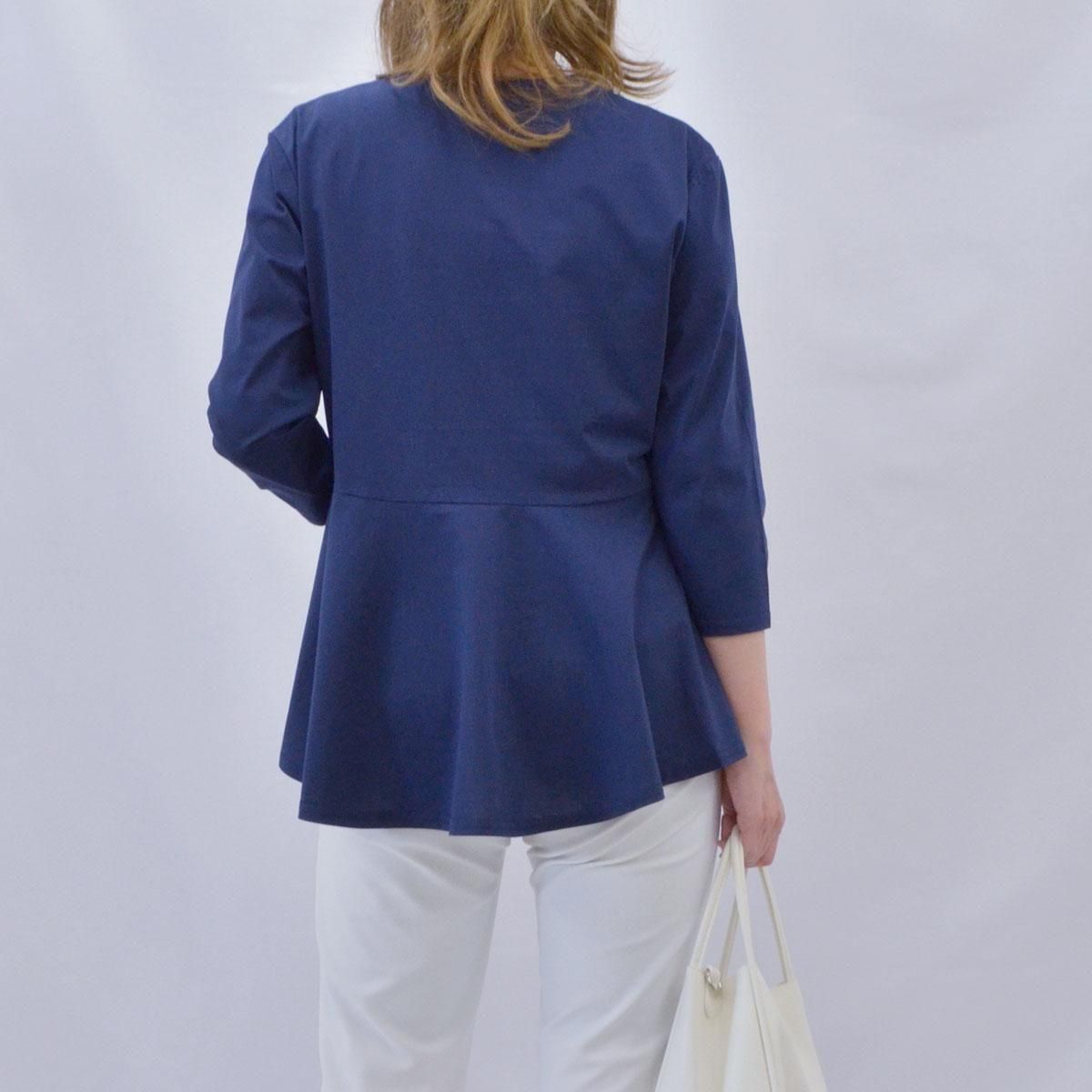 女性らしい魅力を引き立てるペプラムデザインが特徴の八分袖カットソー。