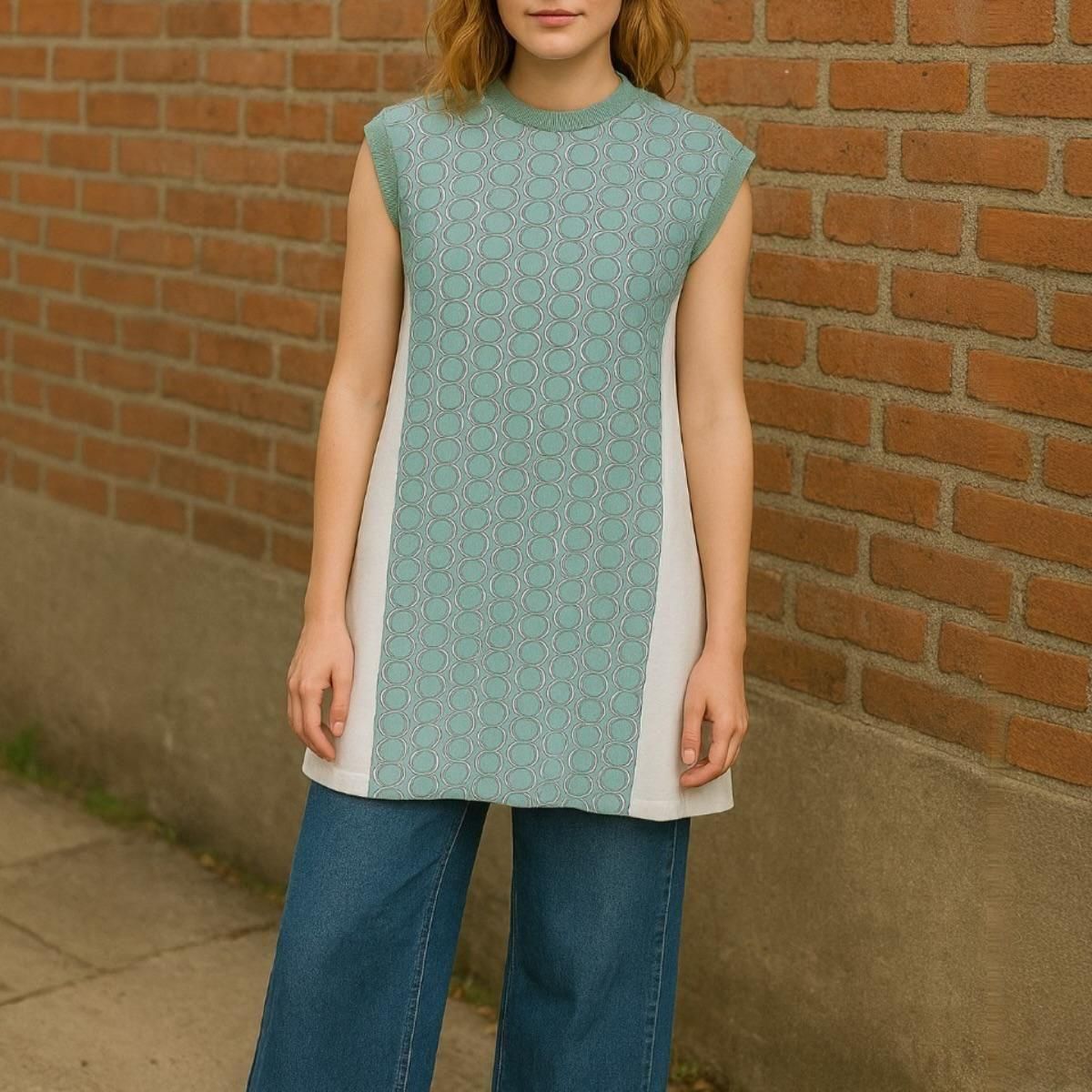 配色ブロックチェック柄ハイネック・ストレートスリーブニット