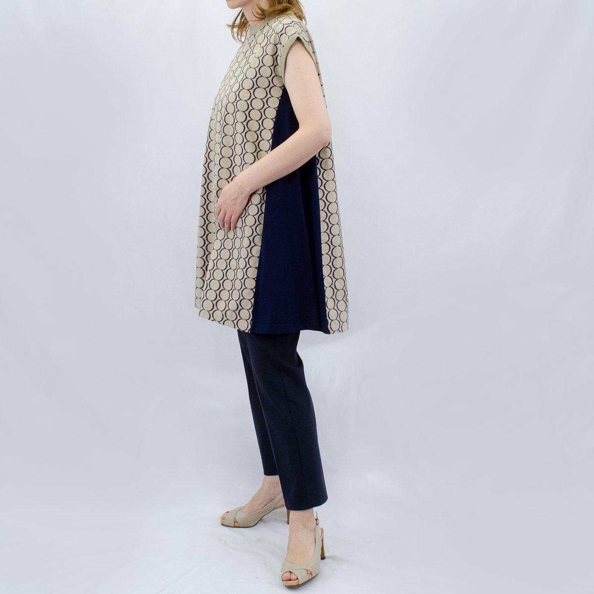 また、襟と袖口に使用されたニット素材が程よいアクセントとなり、エレガントさをプラスしています。