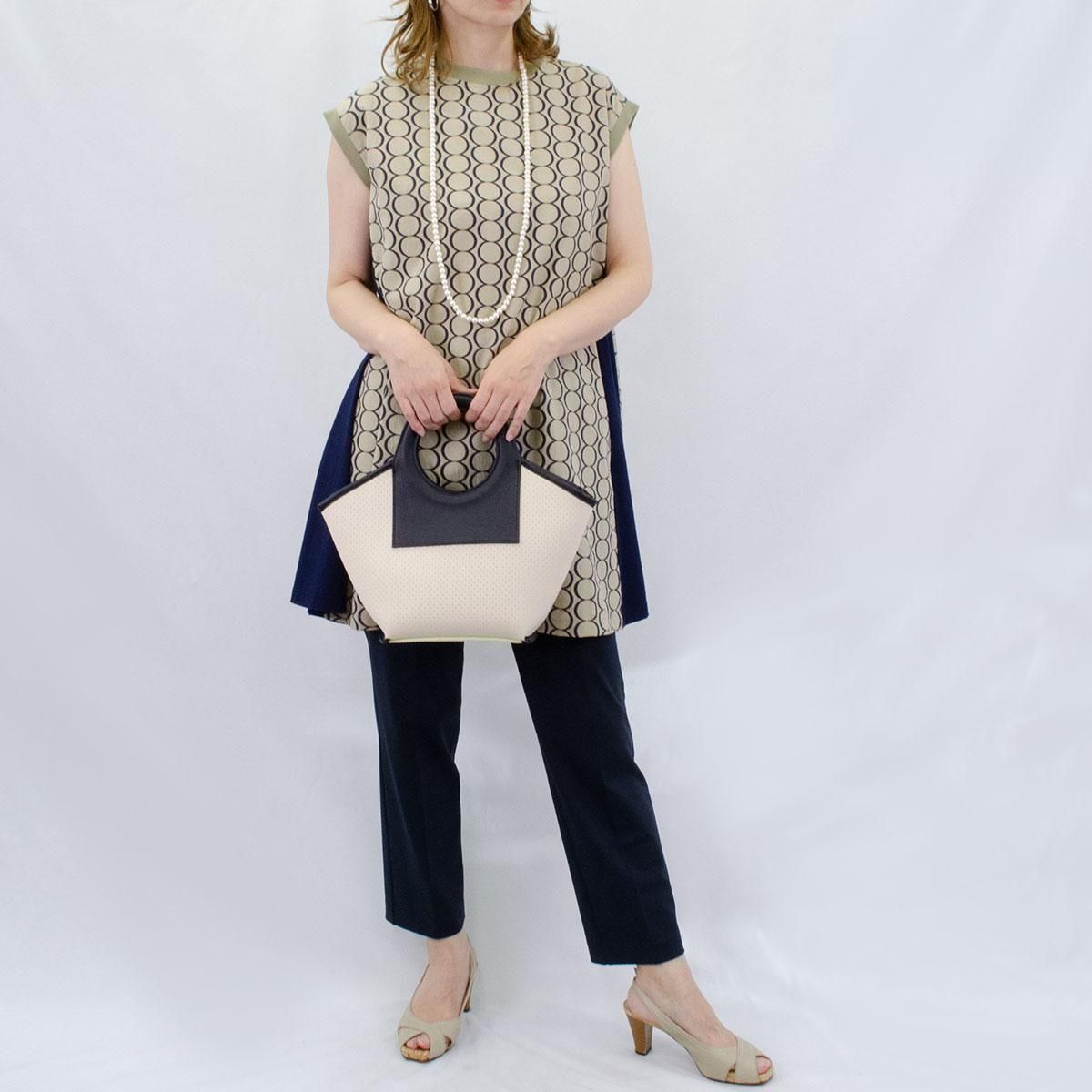 本体に施されたプリント柄が魅力的で、洗濯しても型崩れしにくいウオッシャブル素材を使用しています。