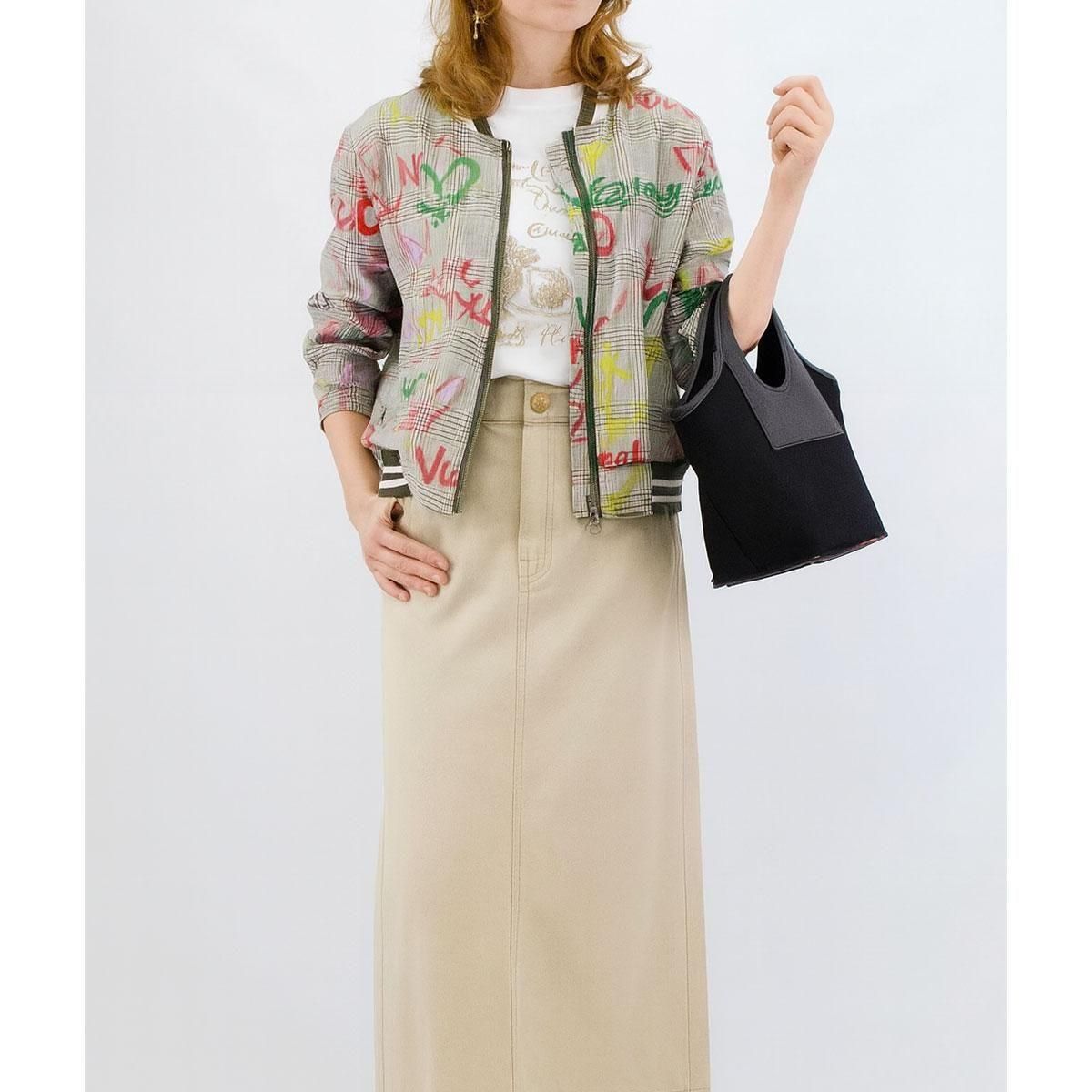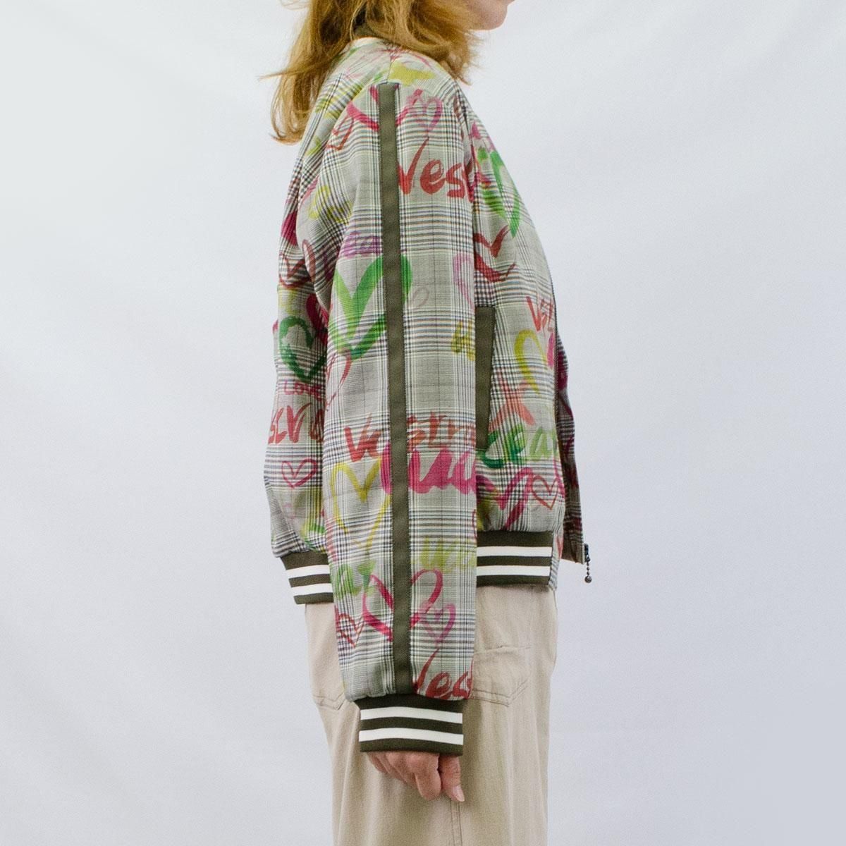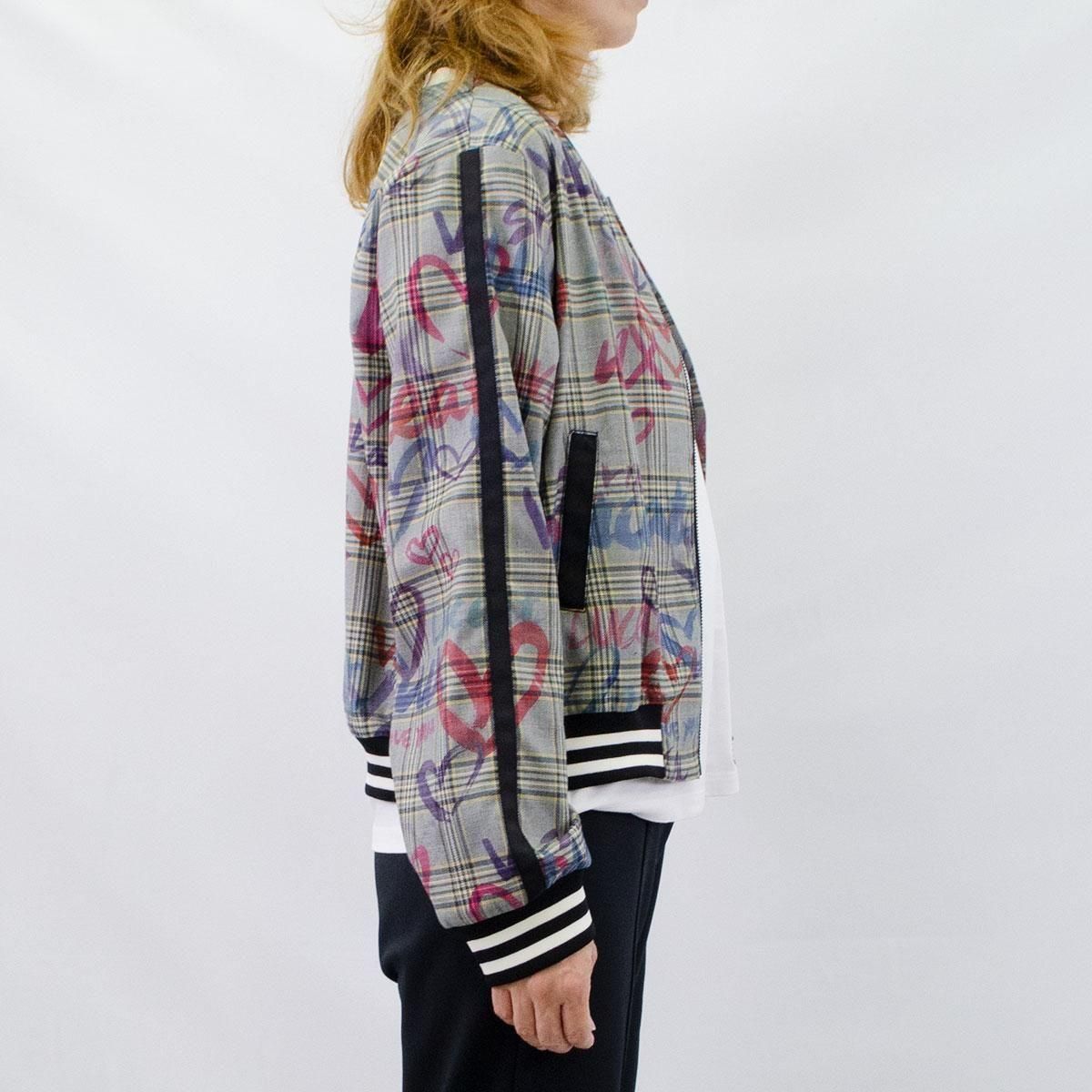 グレンチェック柄の素材に施された、カラフルロゴプリントが可愛いブルゾンです。