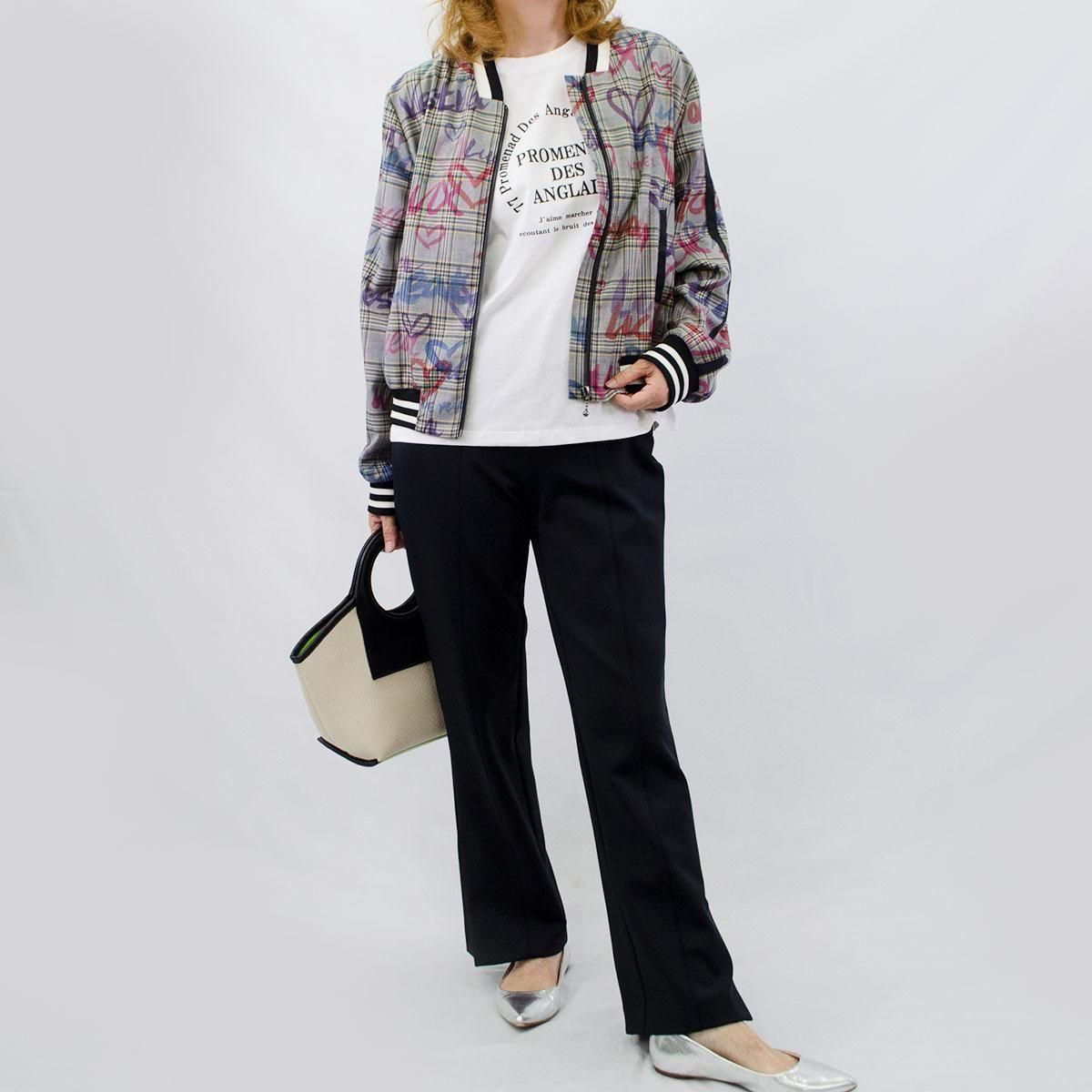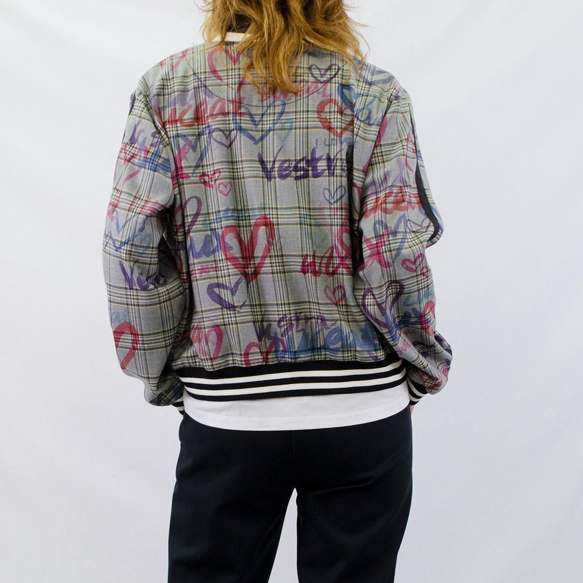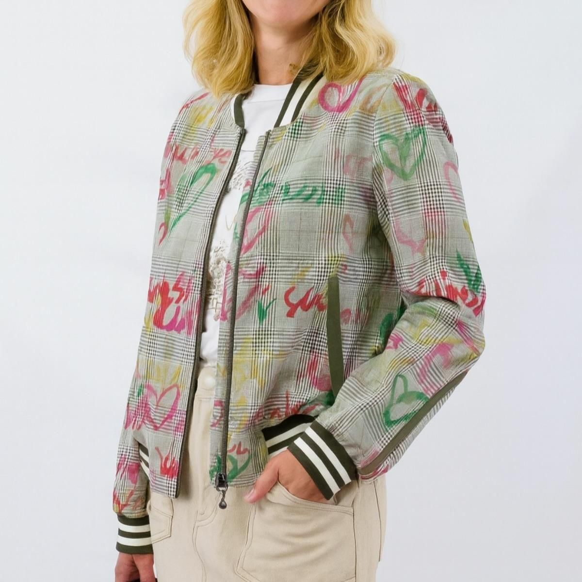グレンチェック柄の素材に施された、カラフルロゴプリントが可愛いブルゾンです。