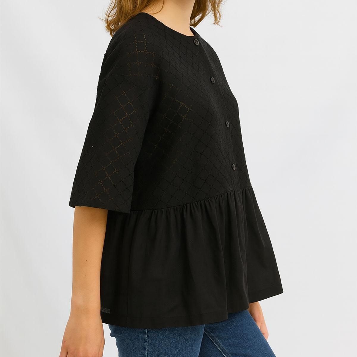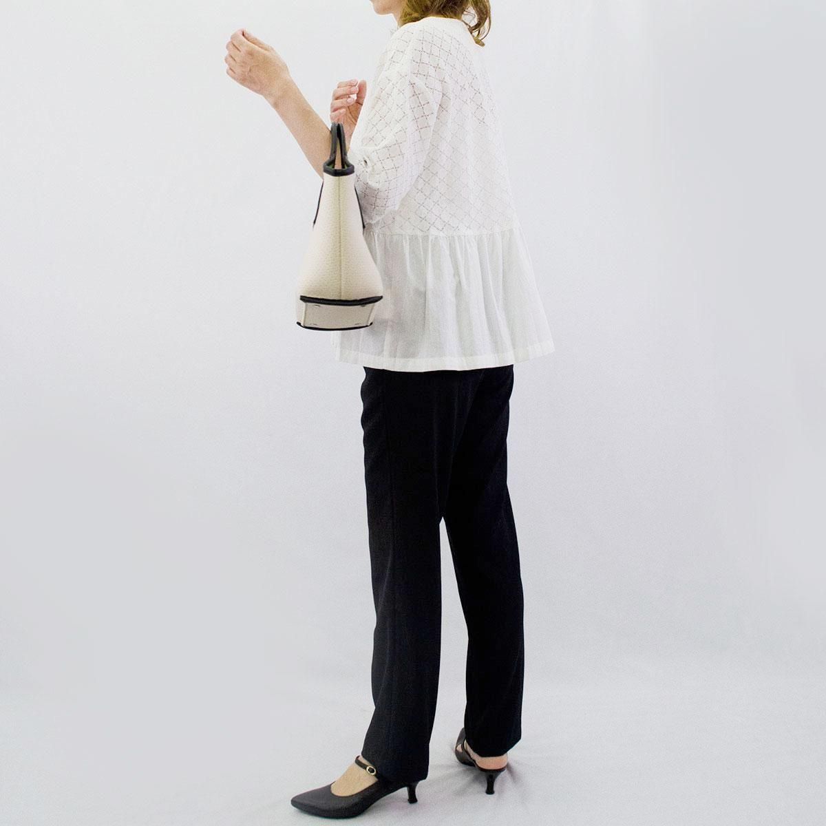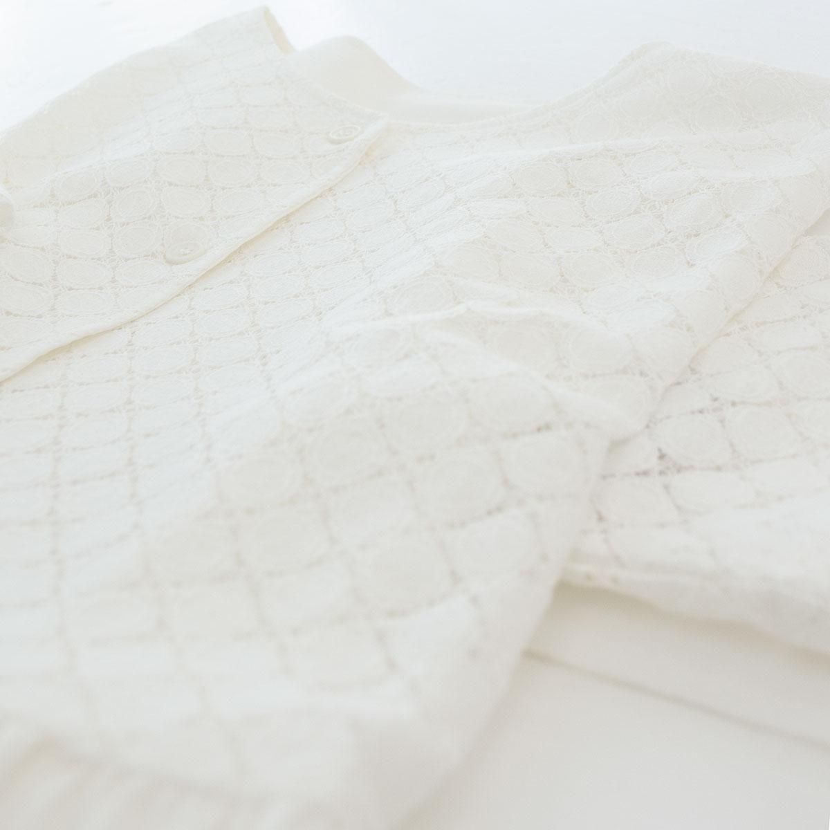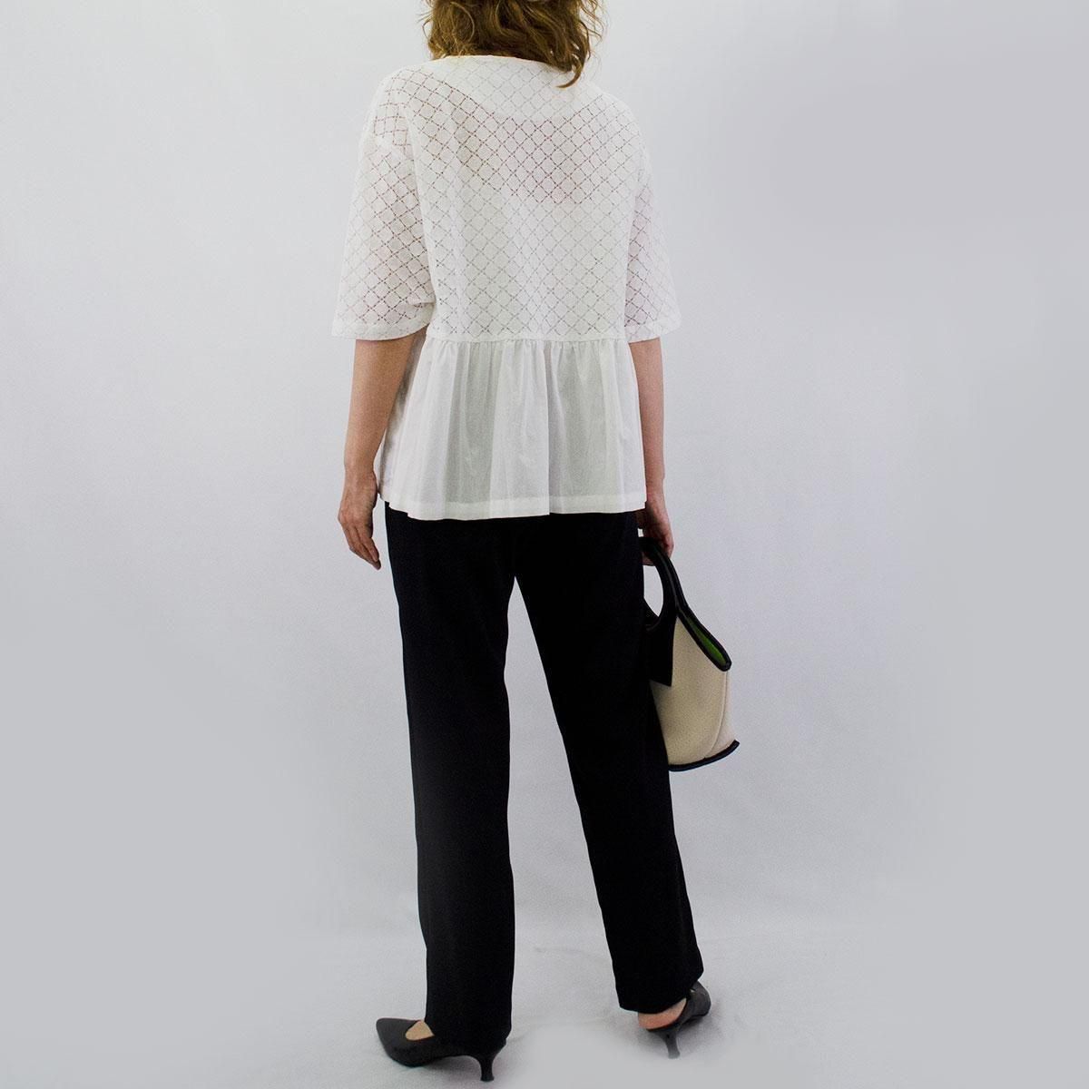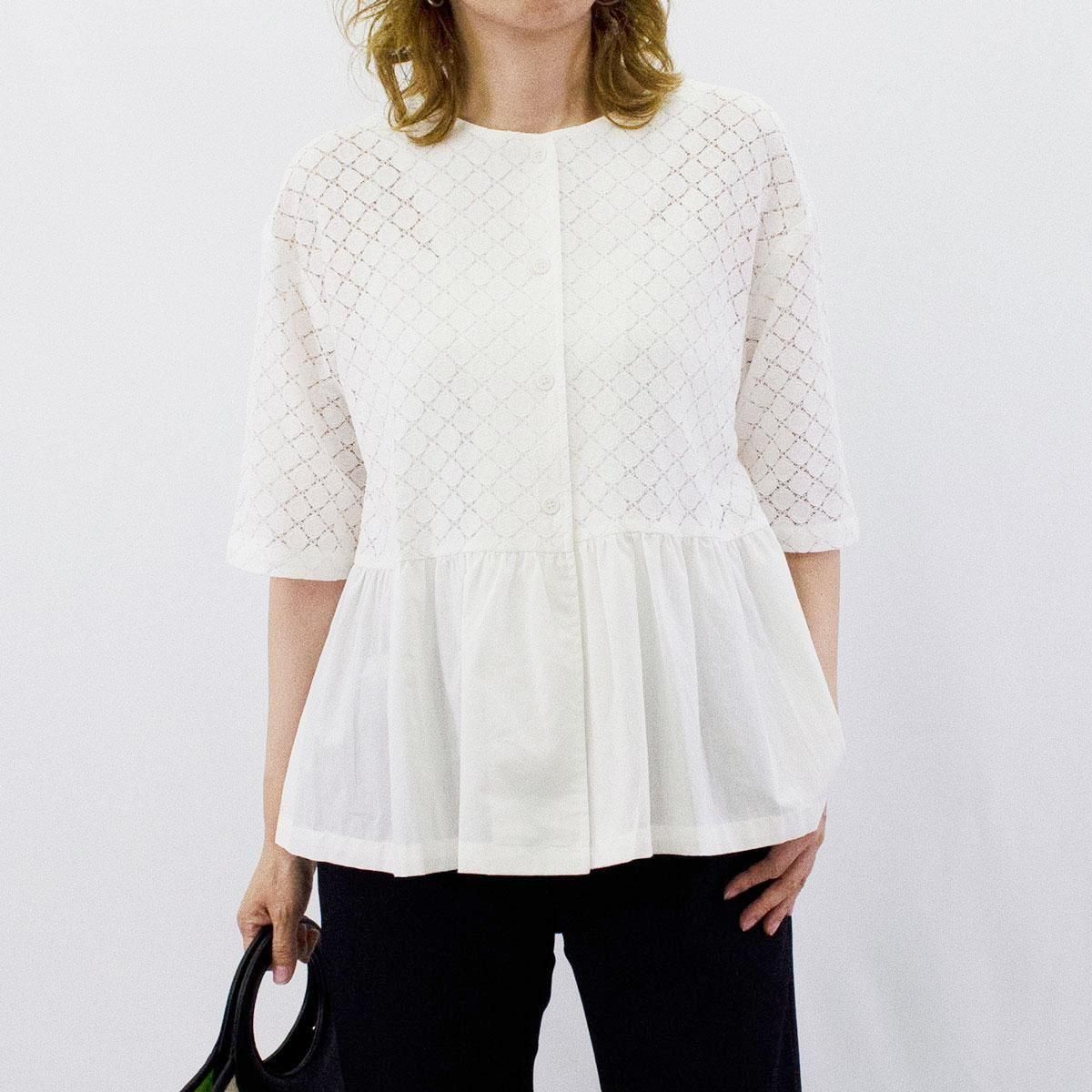 繊細なサークルレースと軽やかなコットン生地を組合わせたフェミニンなブラウスです。