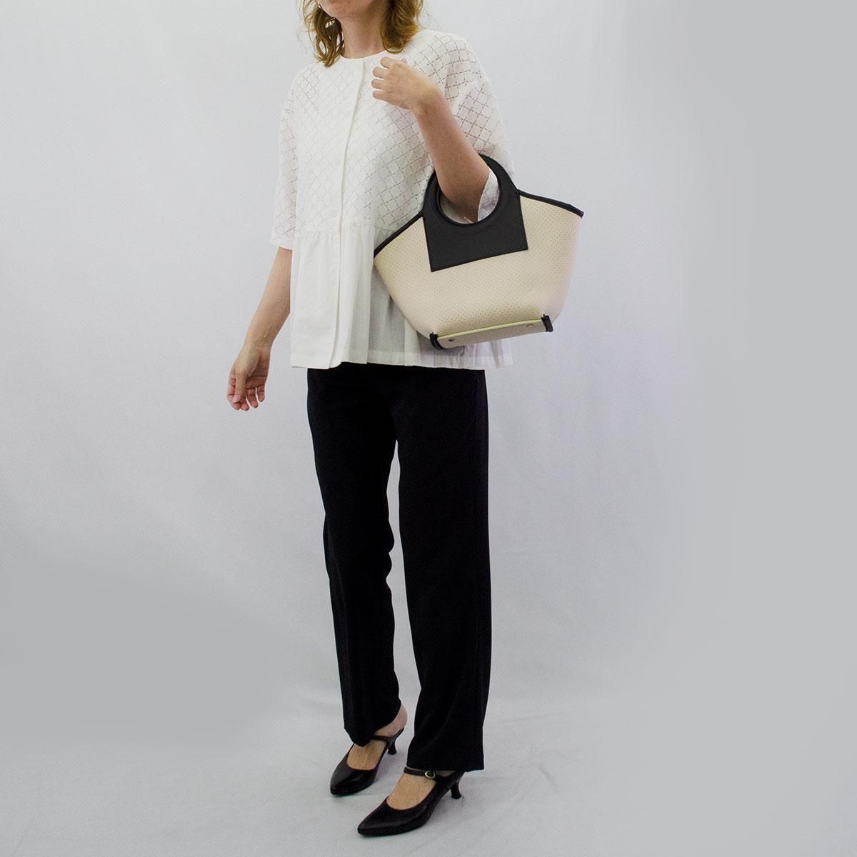 袖は二の腕をカバーしてくれる程よい丈感で上品な肌見せが叶います。