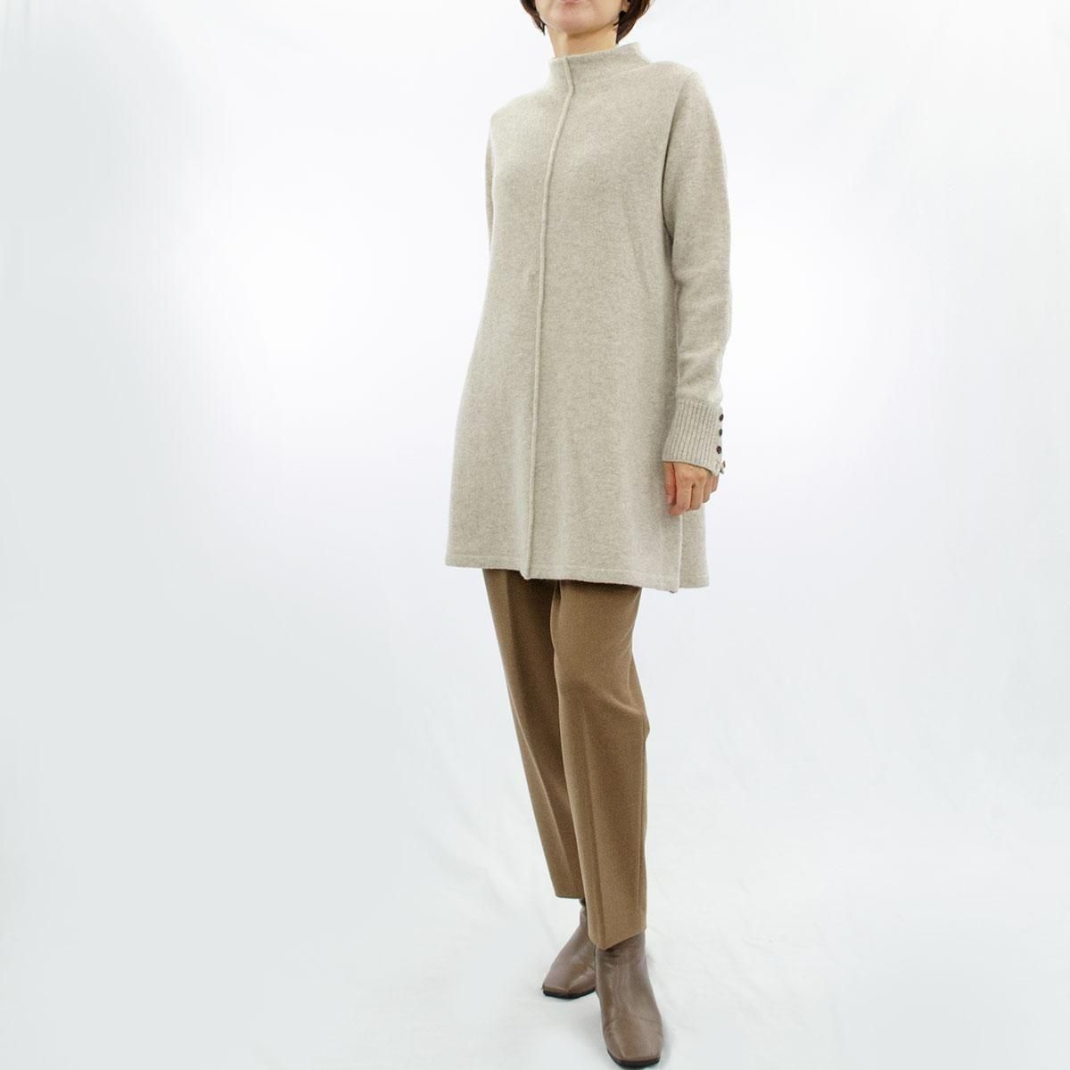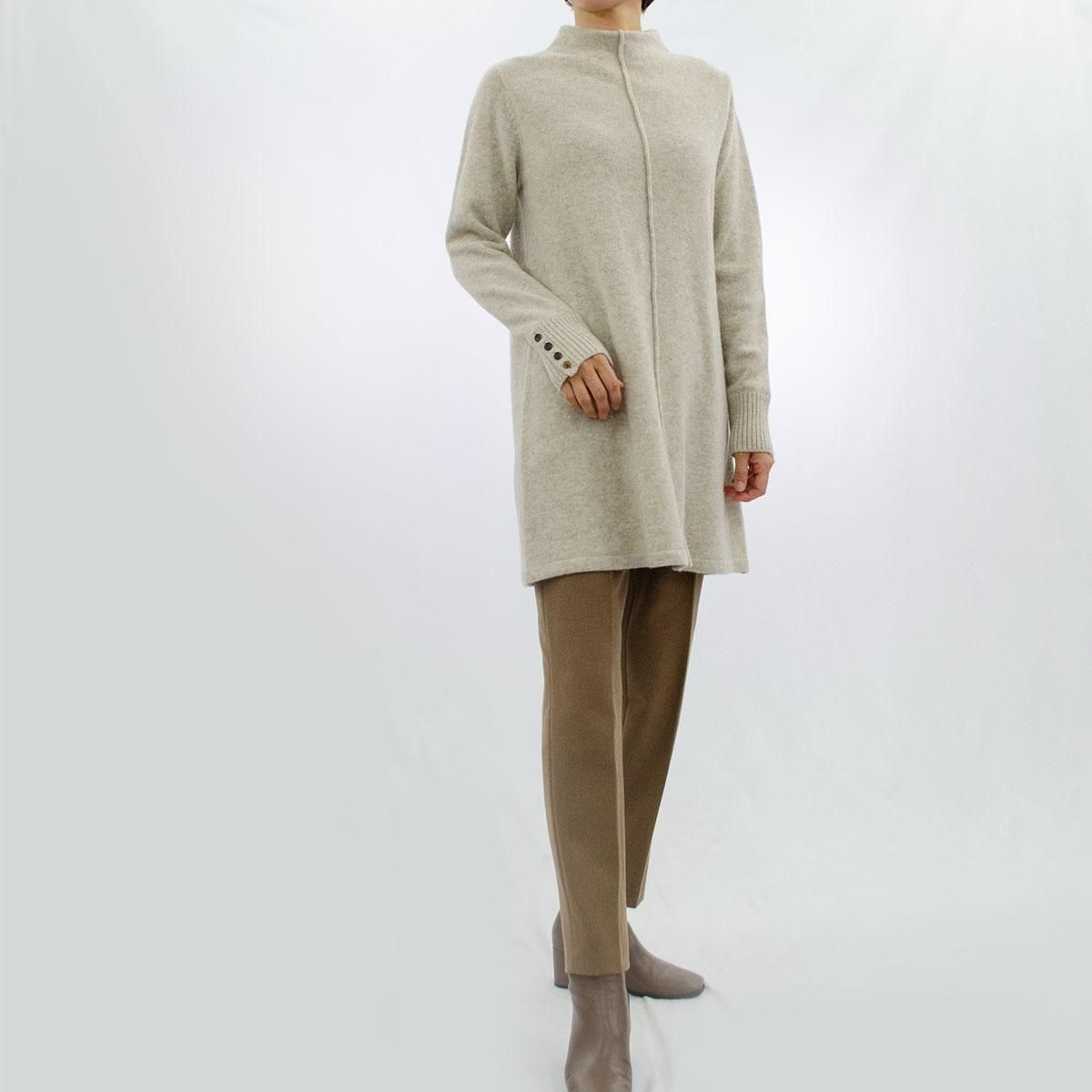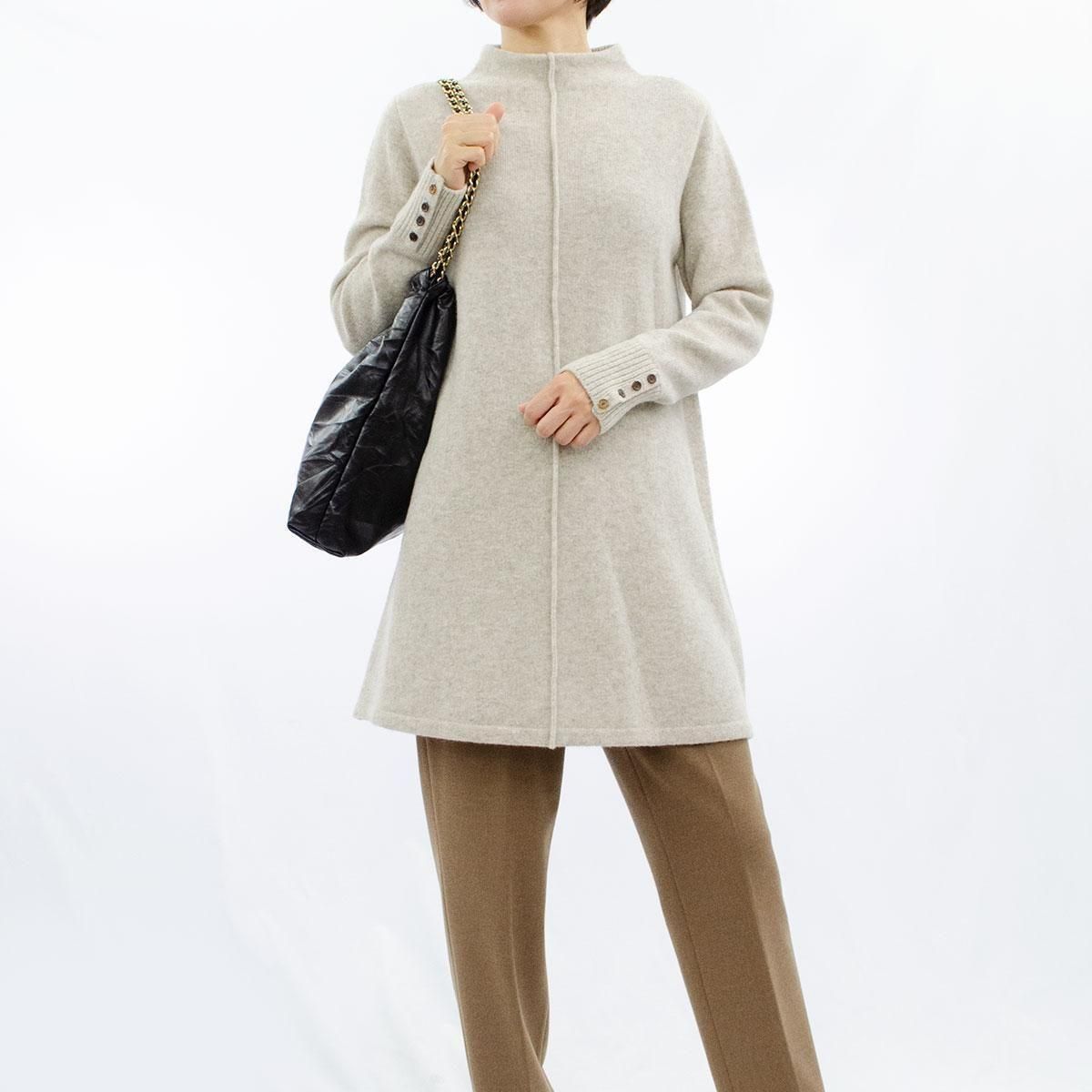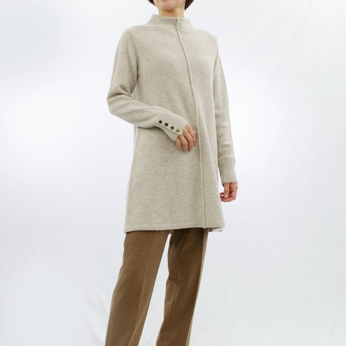 カシミヤ混・モックネック・シームデザイン・ニットチュニック