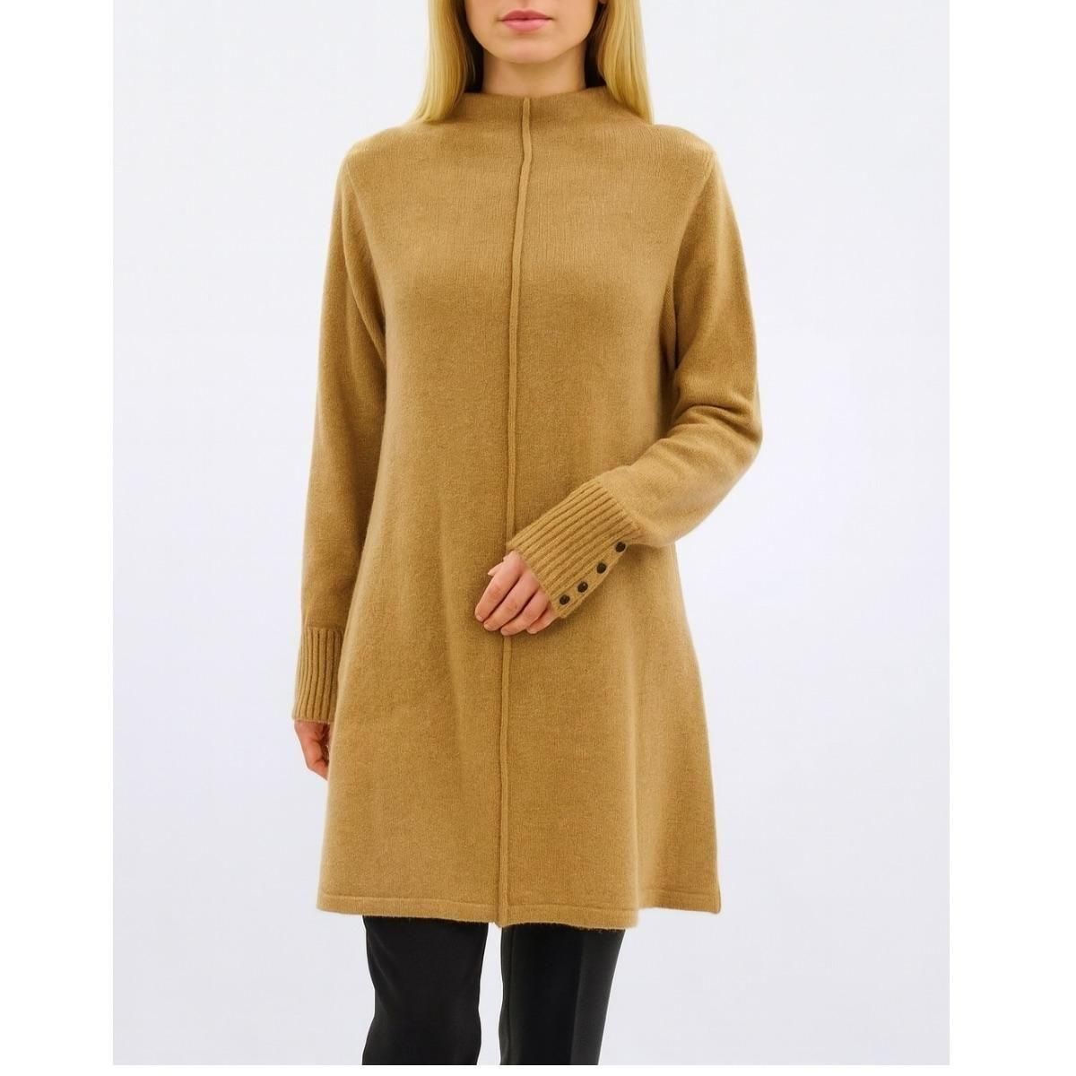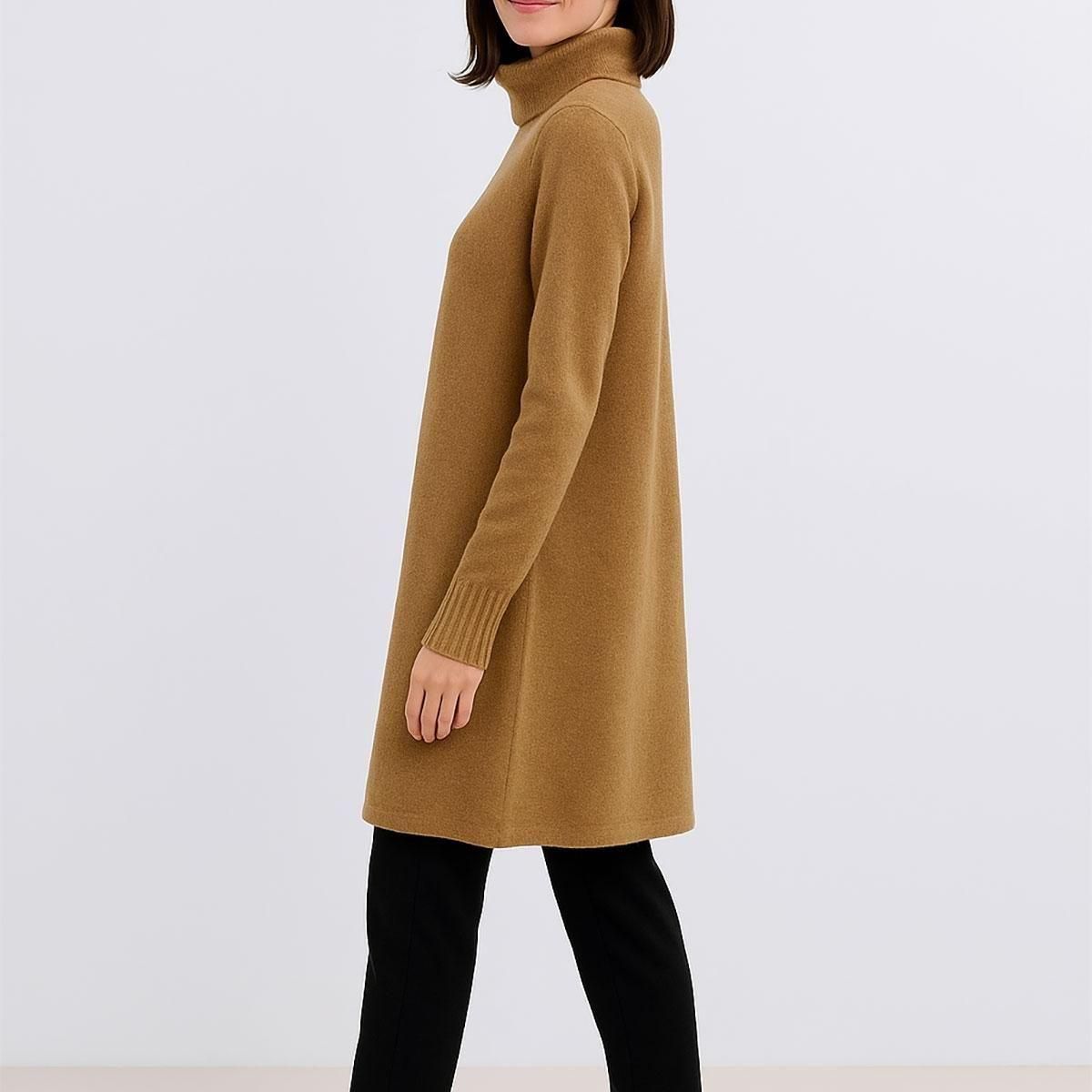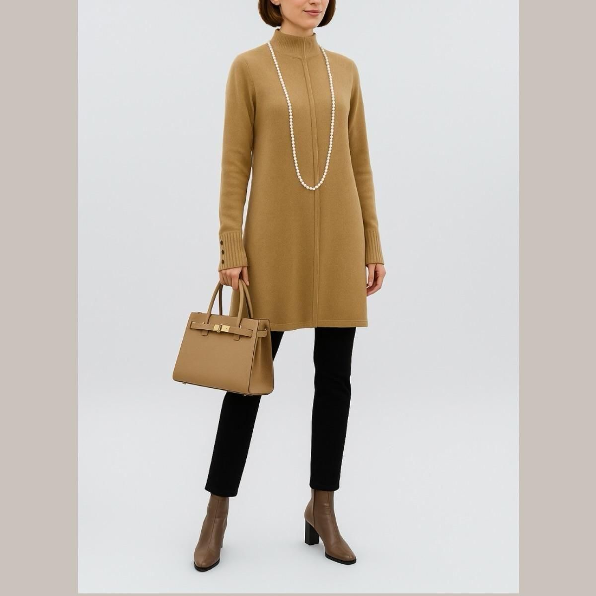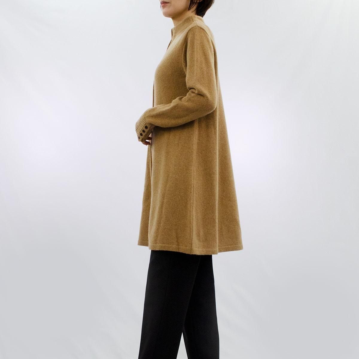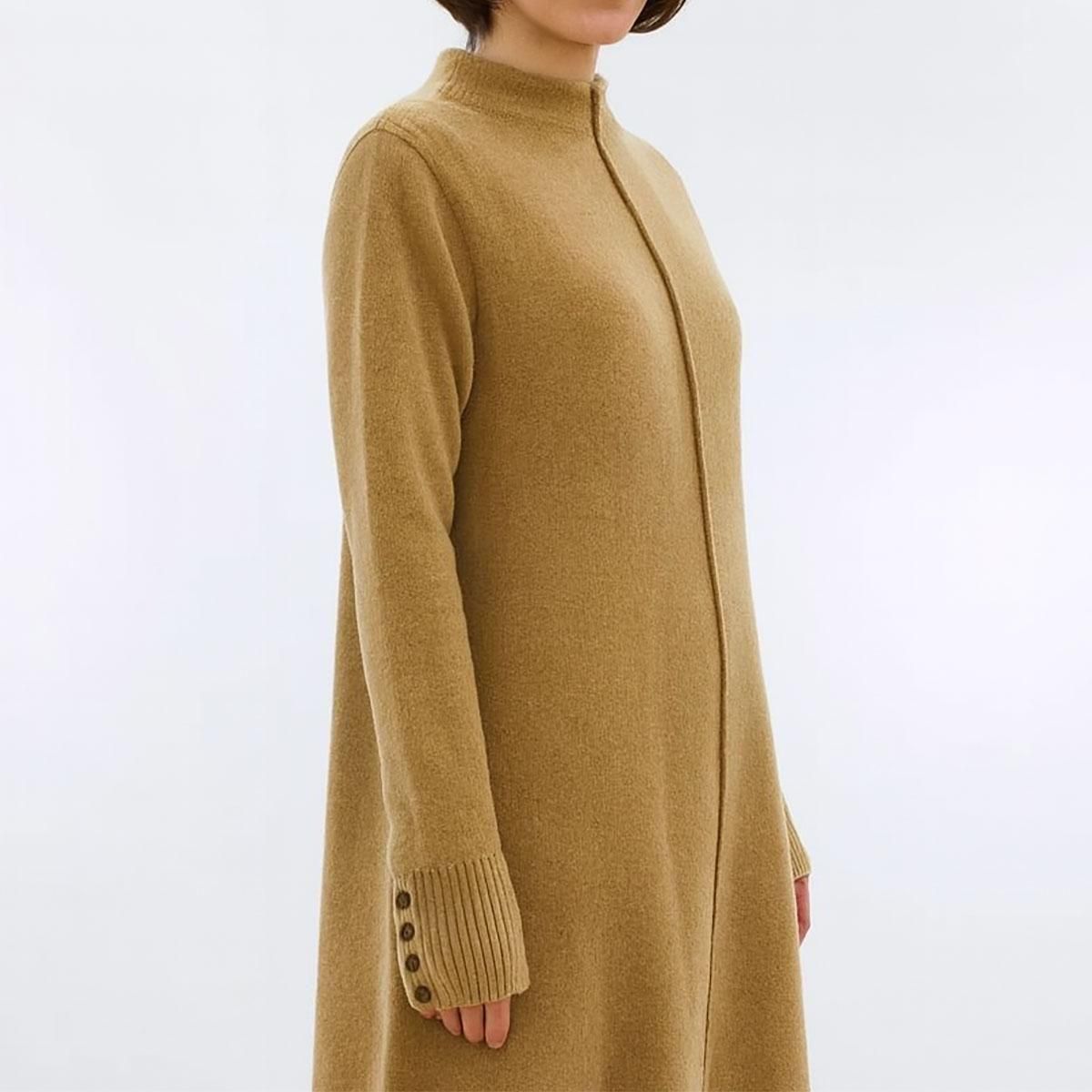 カシミヤ混・モックネック・シームデザイン・ニットチュニック