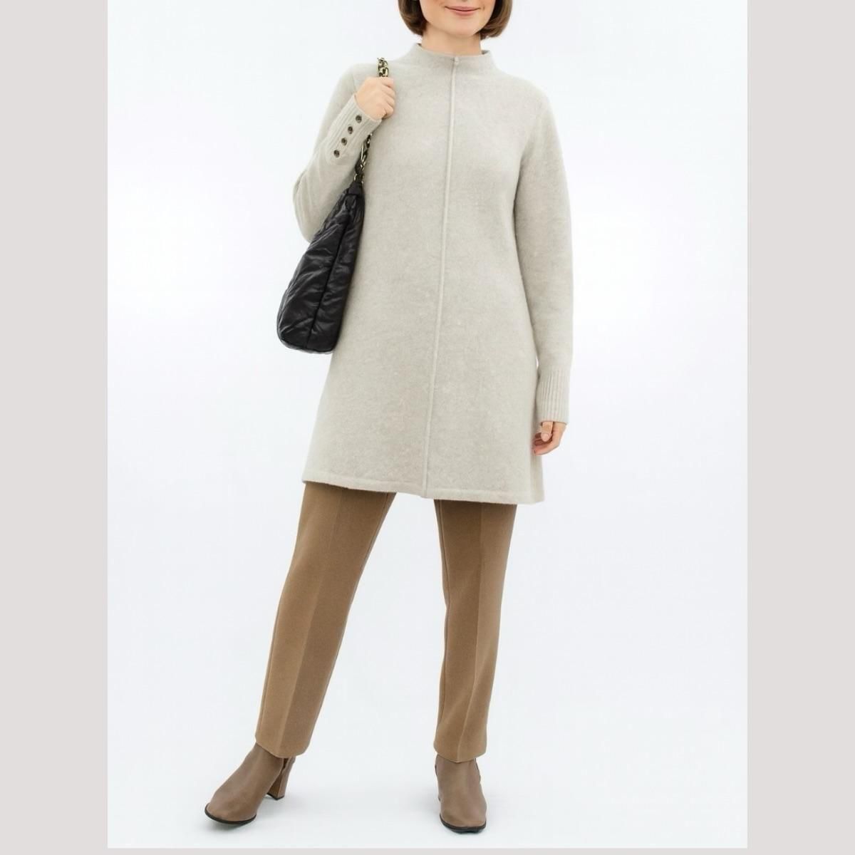 首元はやさしく包み込むモックネック仕様で、寒い季節にもぴったりの暖かさと上品さを両立。