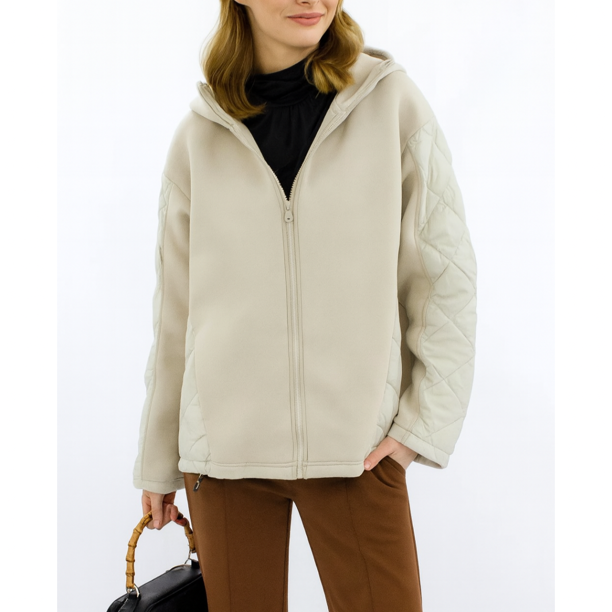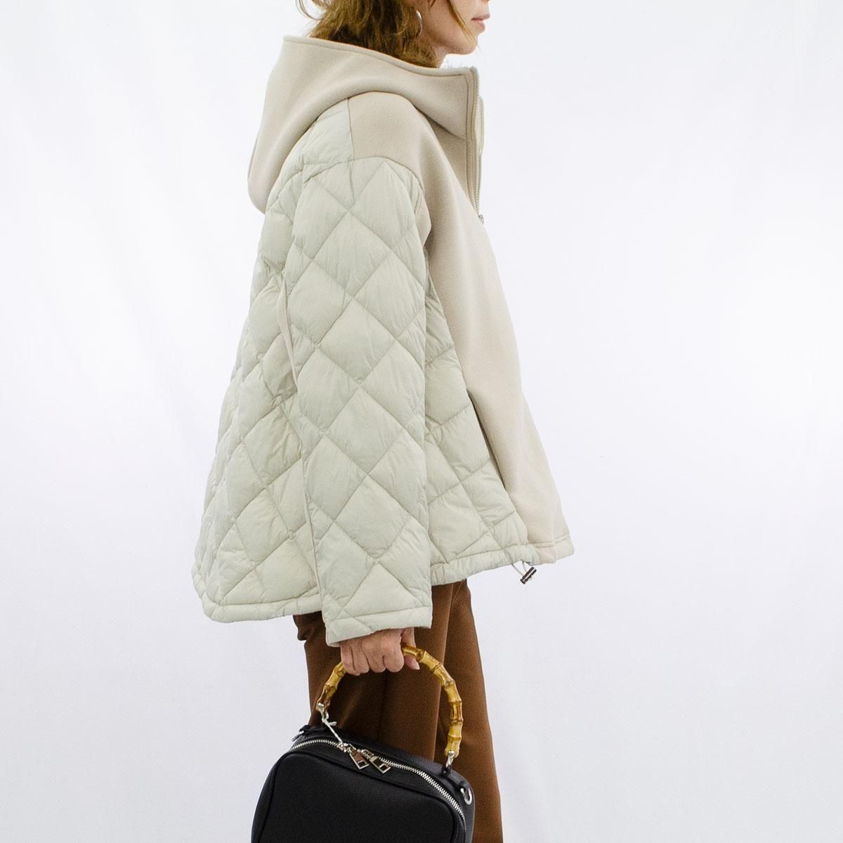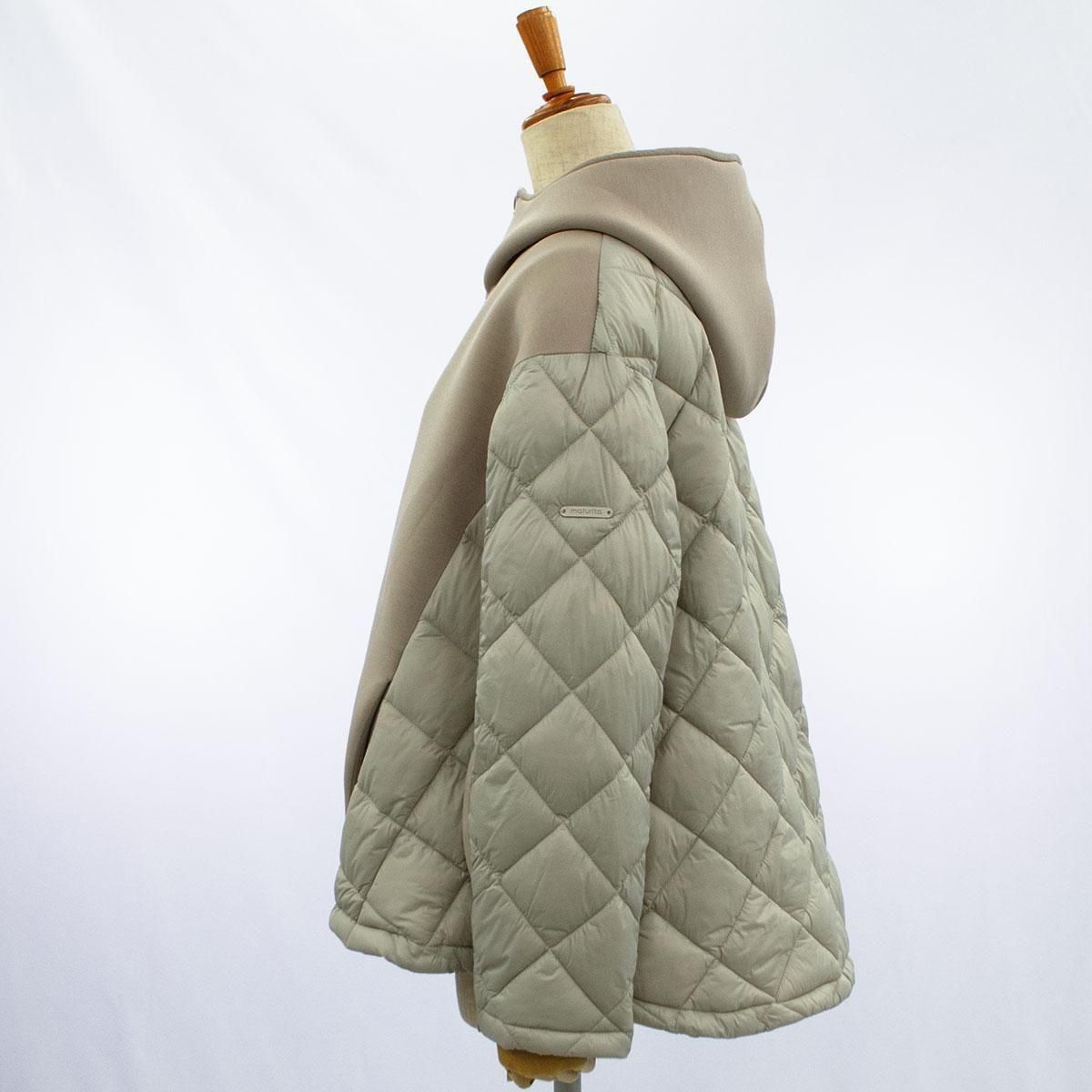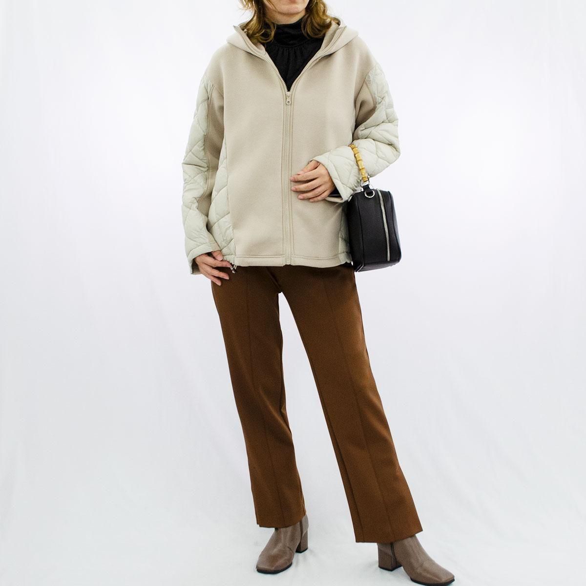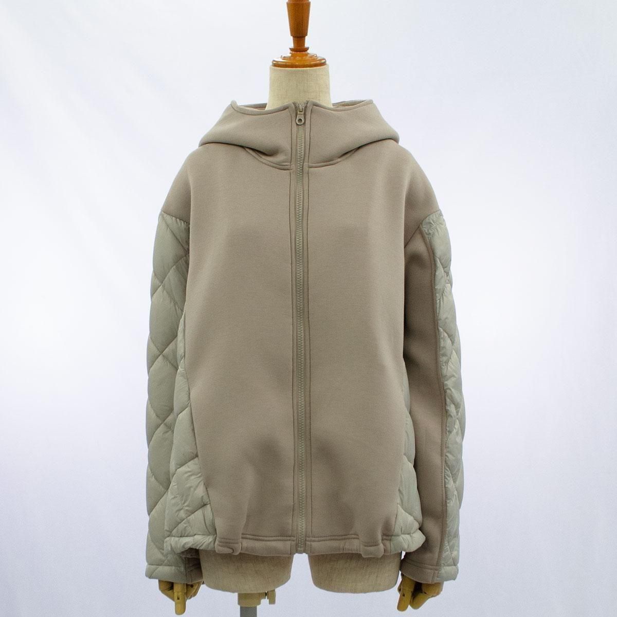異素材切替・キルティング・前後差・ジップアップフーディー