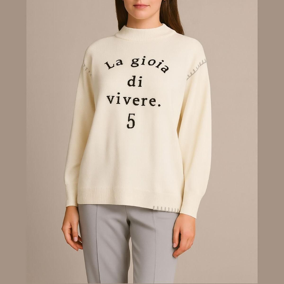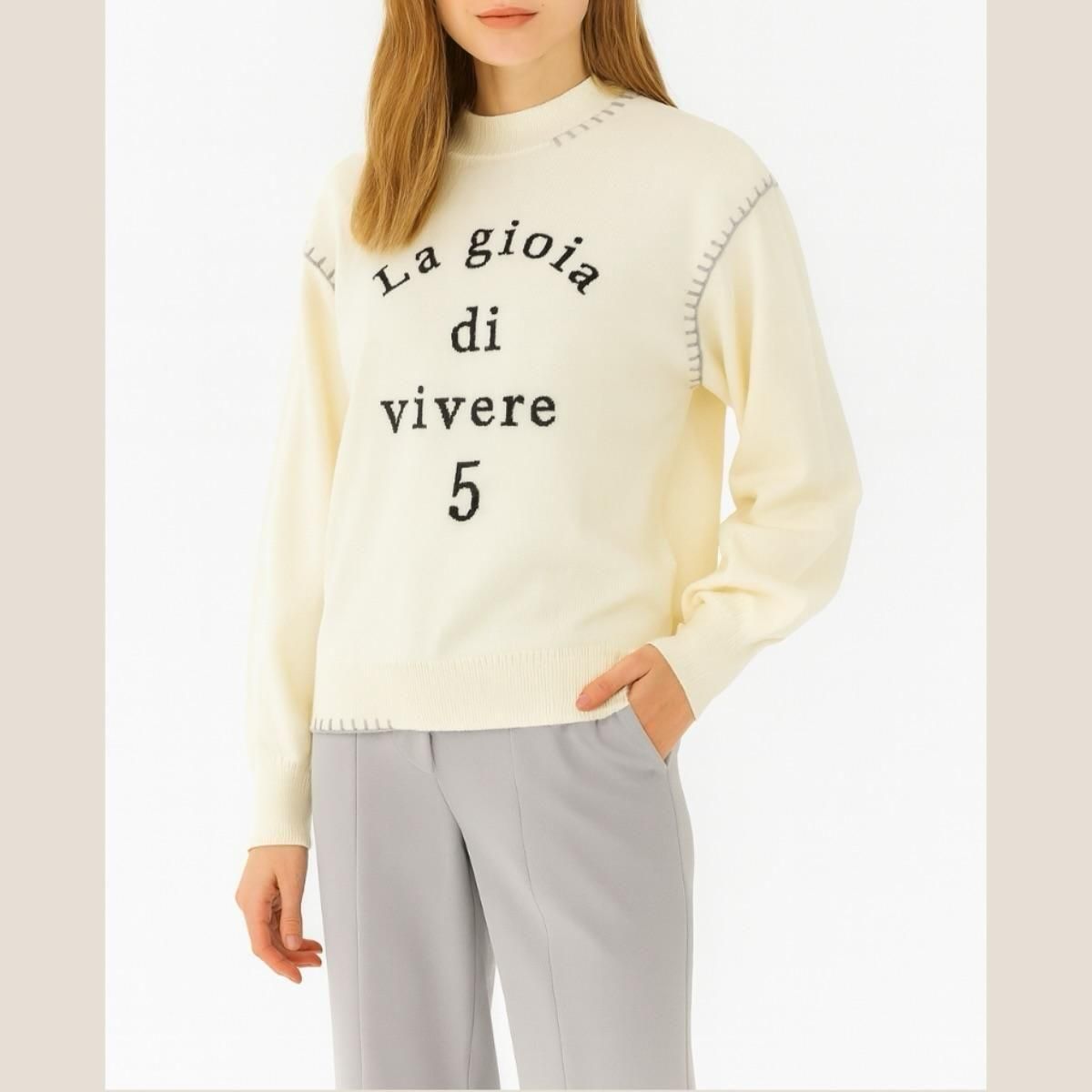 カシミヤ100%・センターステッチ・ハイネックニット・プルオーバー