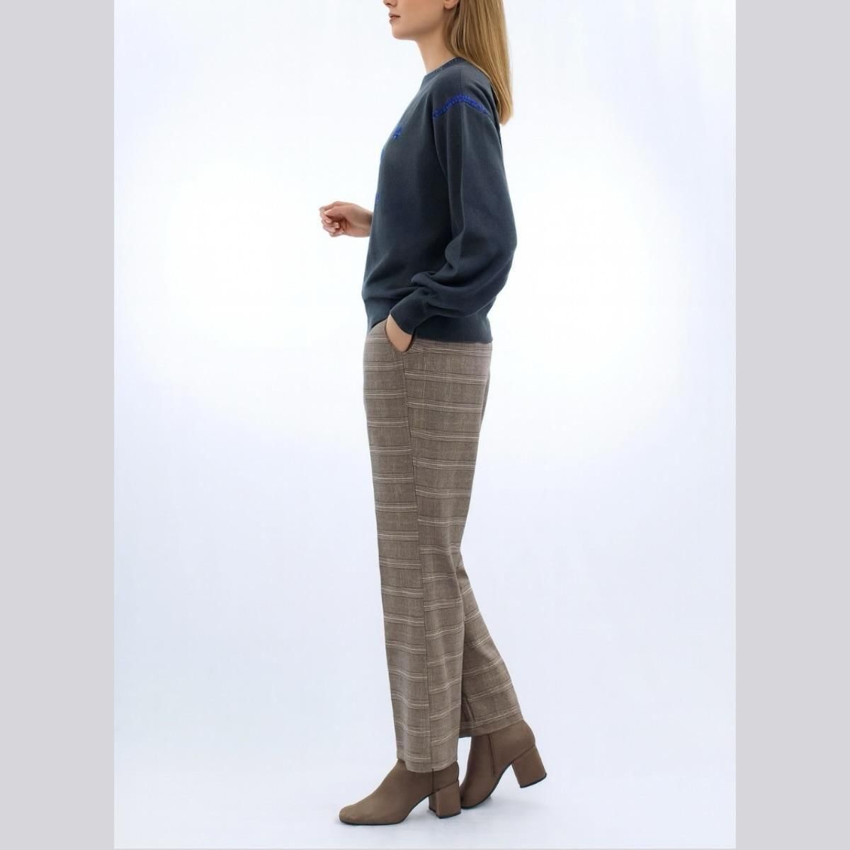 ボーダー柄ウエストゴム・ストレートパンツ