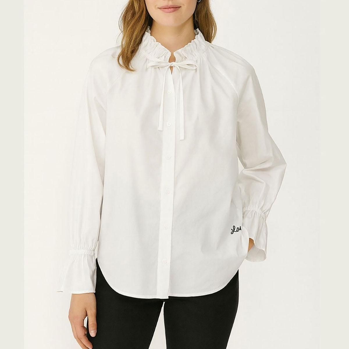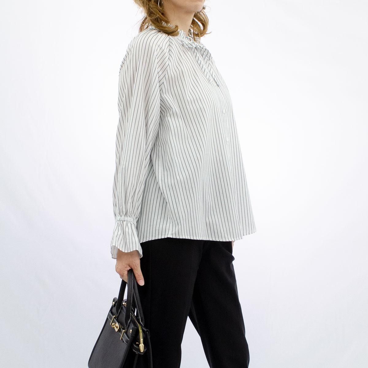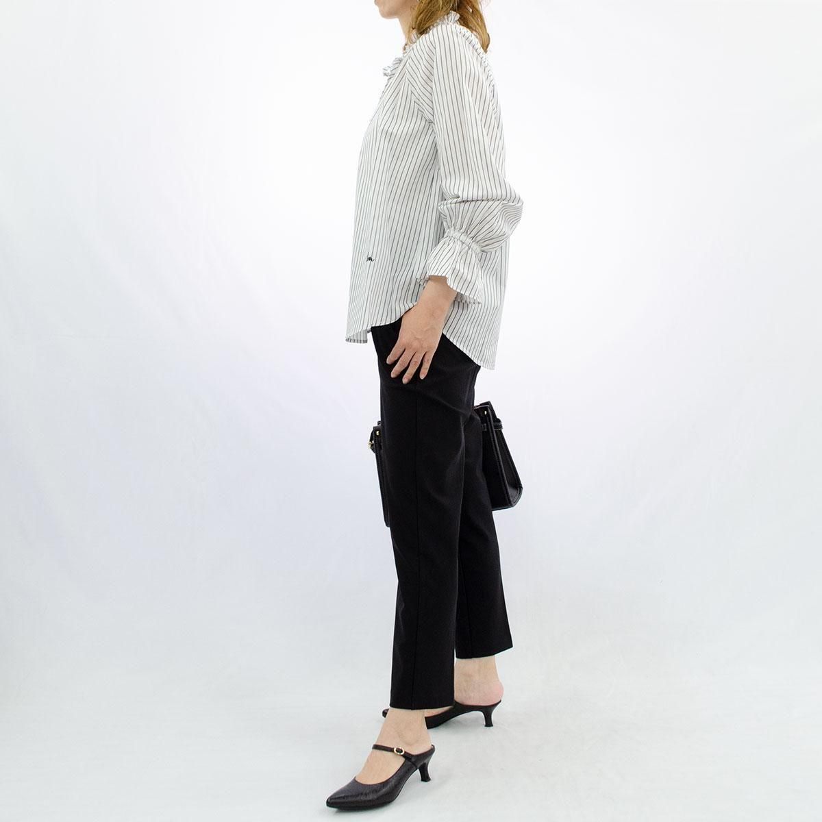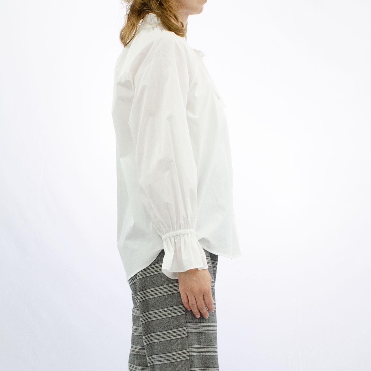 フリルネック・リボンタイ・ベルスリーブブラウス
