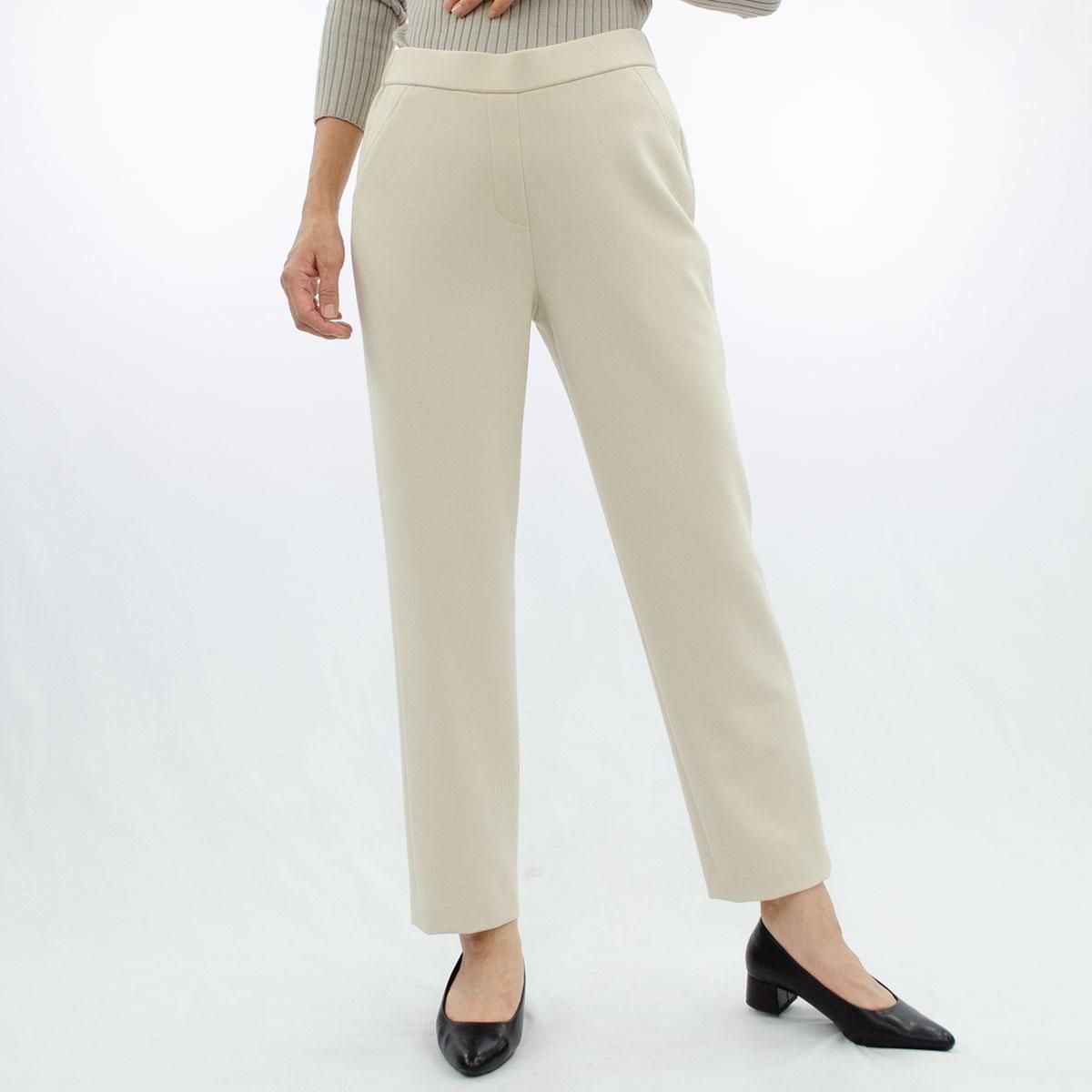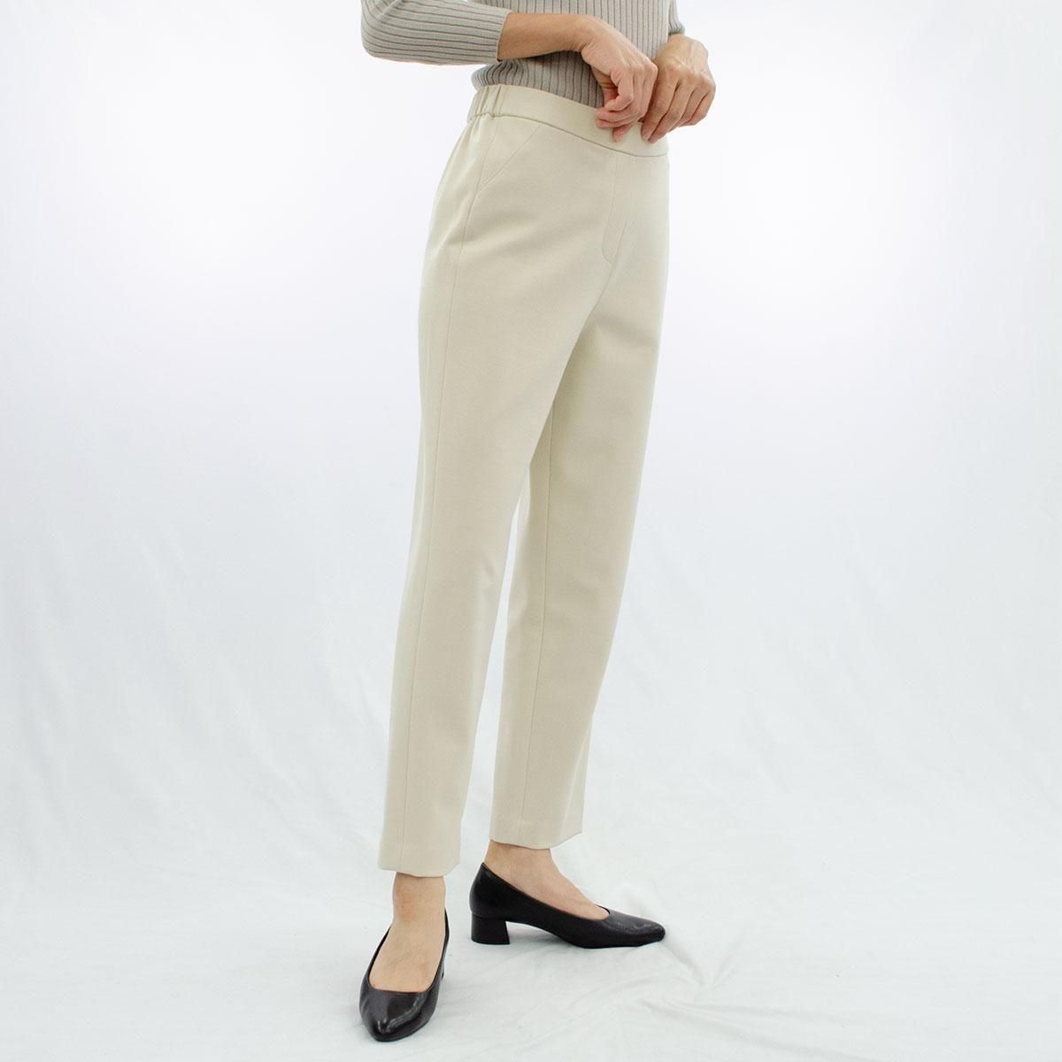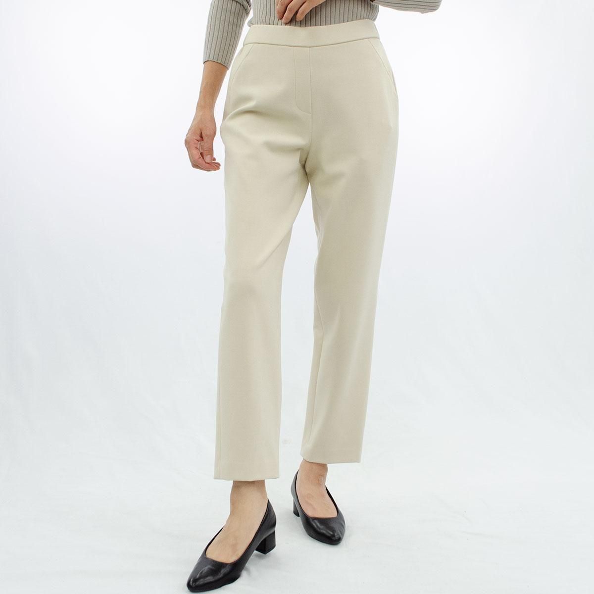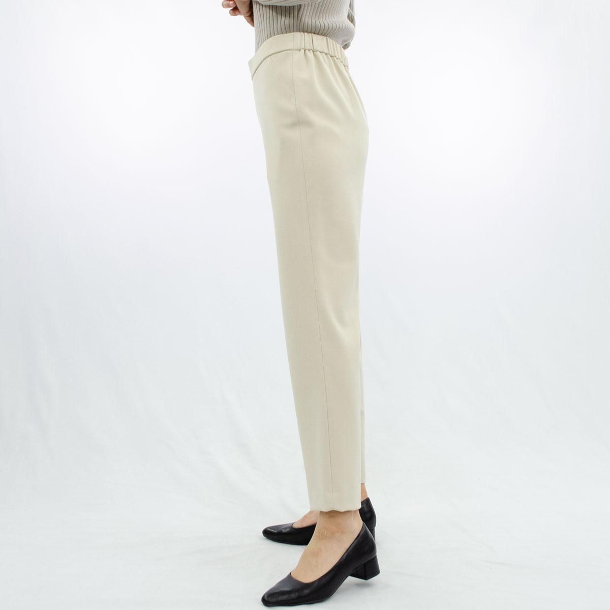 ウオッシャブル・ウエストゴム・裏起毛テーパードパンツ・バニラ色