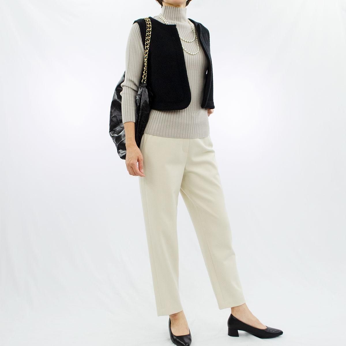 足首に向かって細くなるテーパードシルエットは、脚をすっきりと長く見せてくれます。