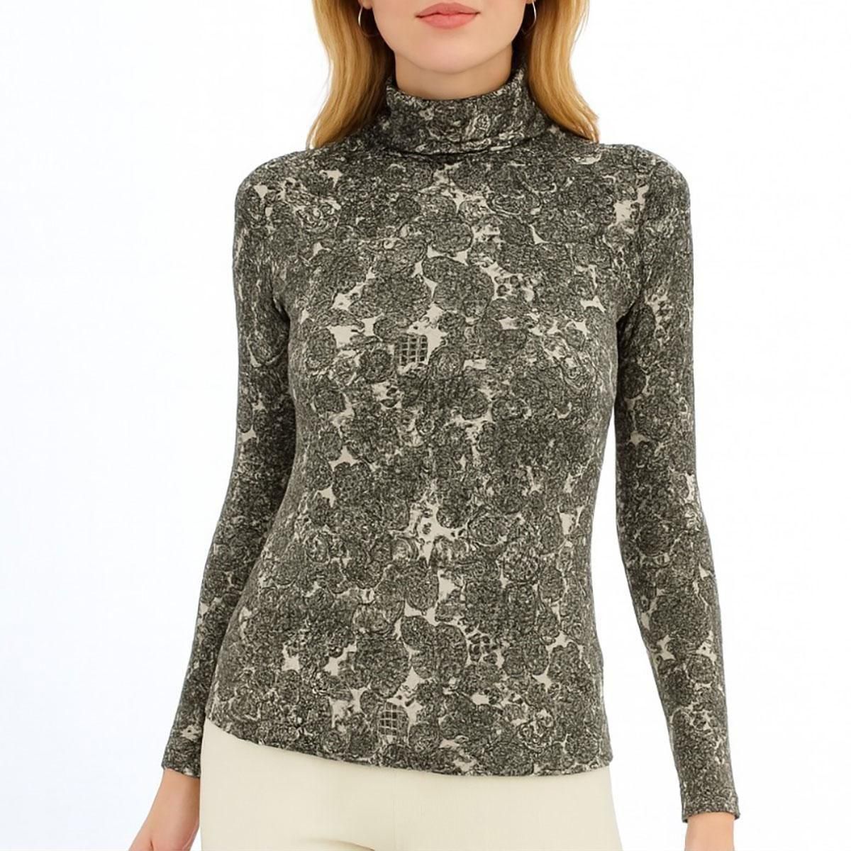 ウール100%・ダマスク柄・ハイネックプルオーバー 785319