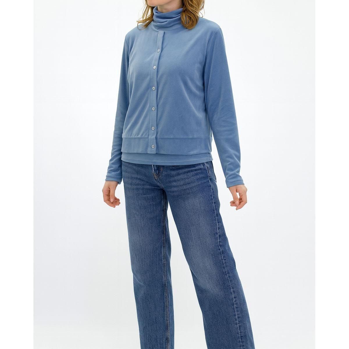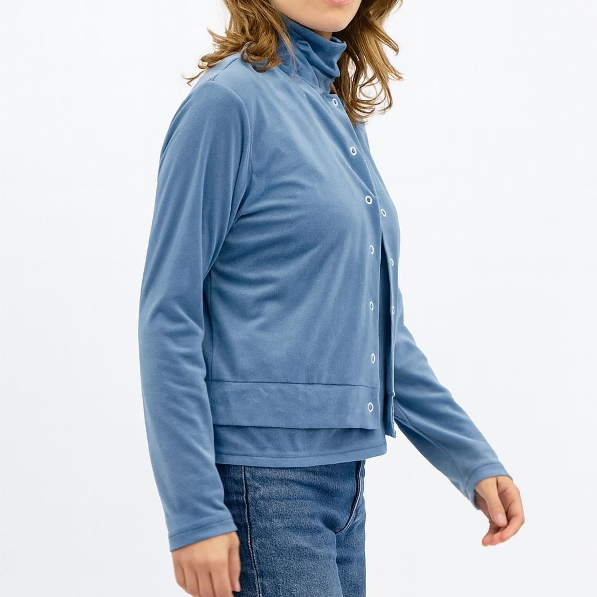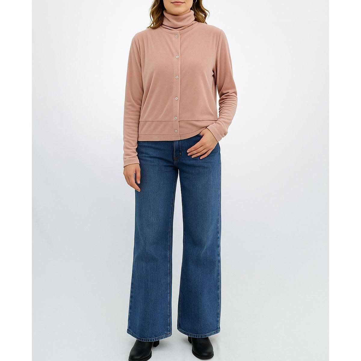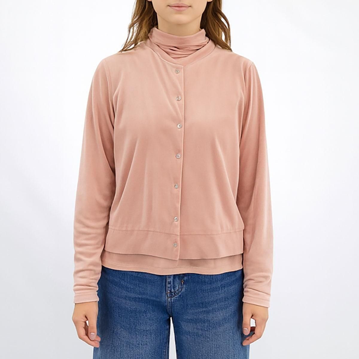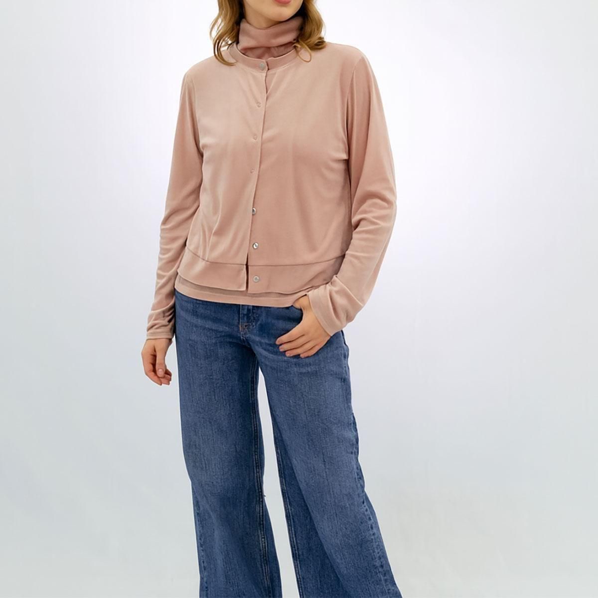 ベロア調・リングスナップボタン・クールネックカーディガン
