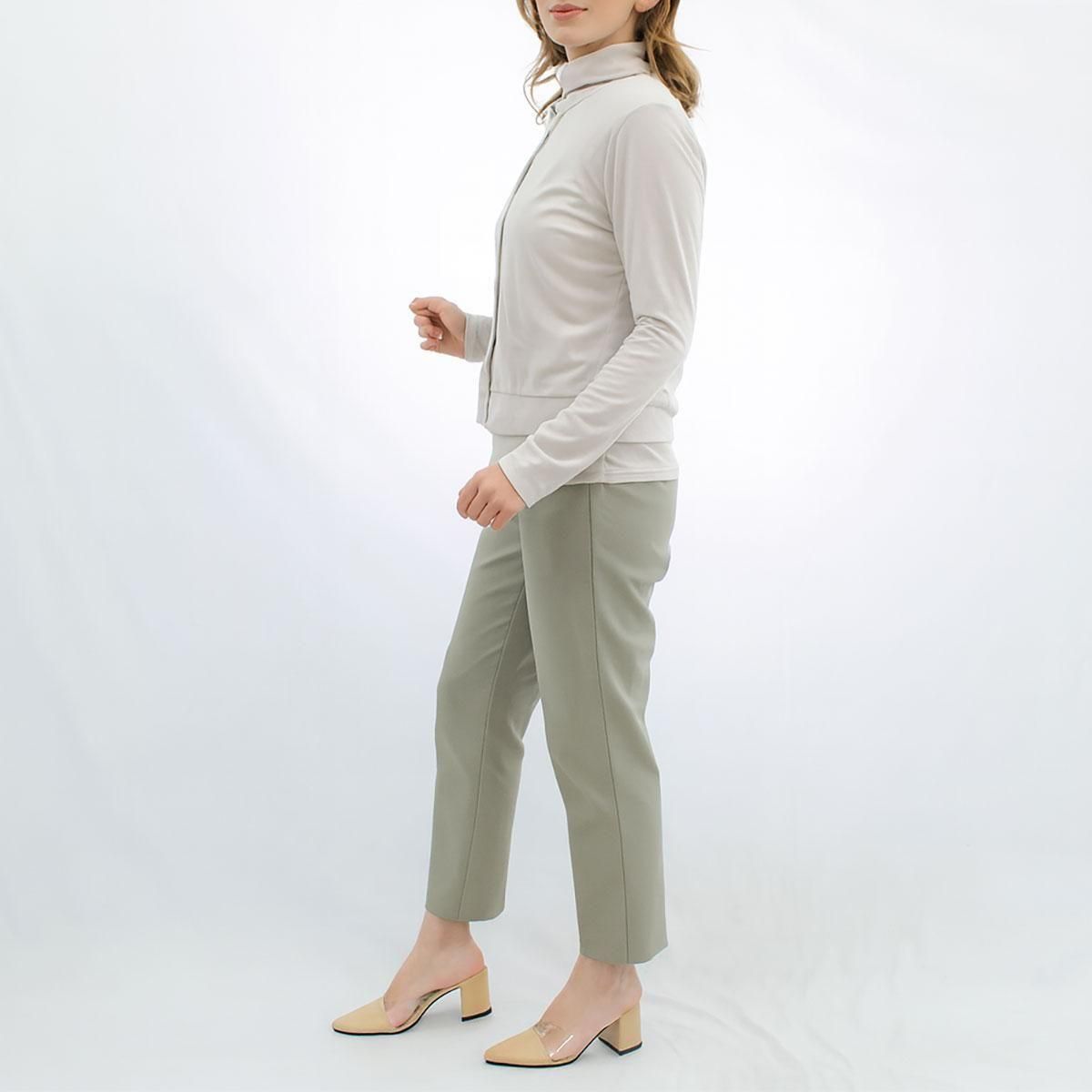 同素材のハイネックカットソーを合わせれば、洗練されたセットアップスタイルが完成します。