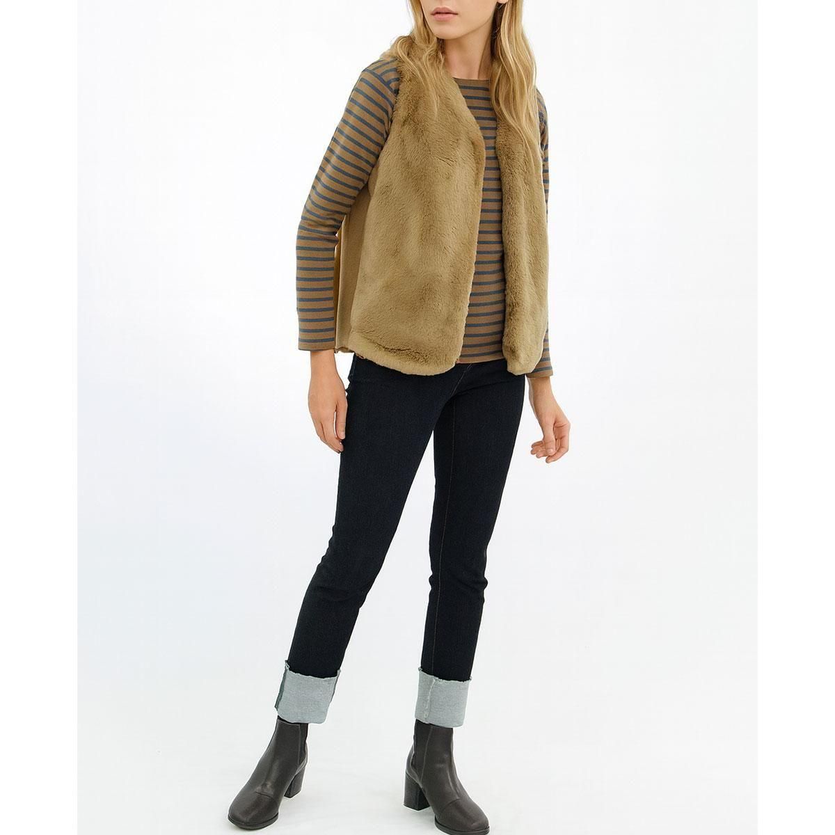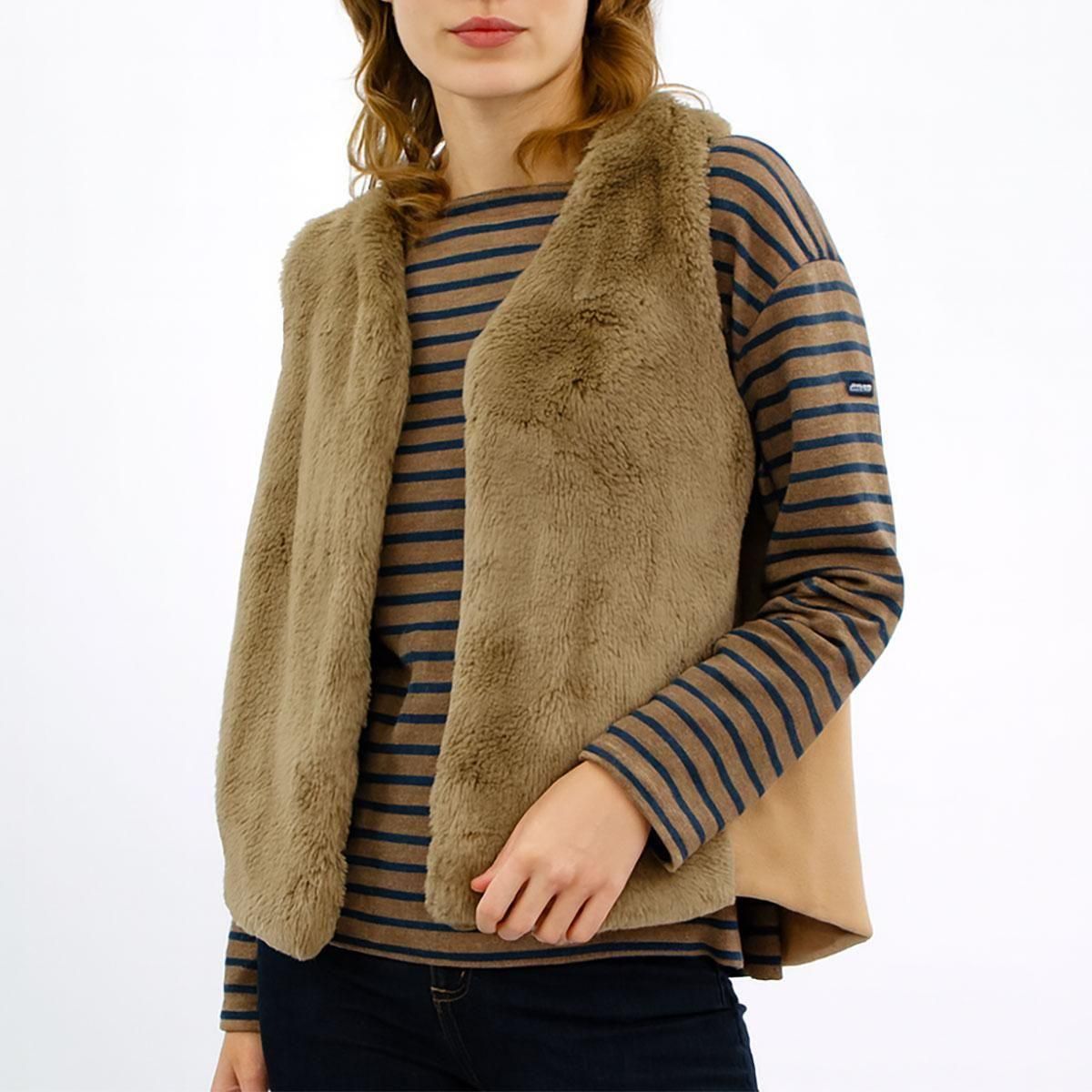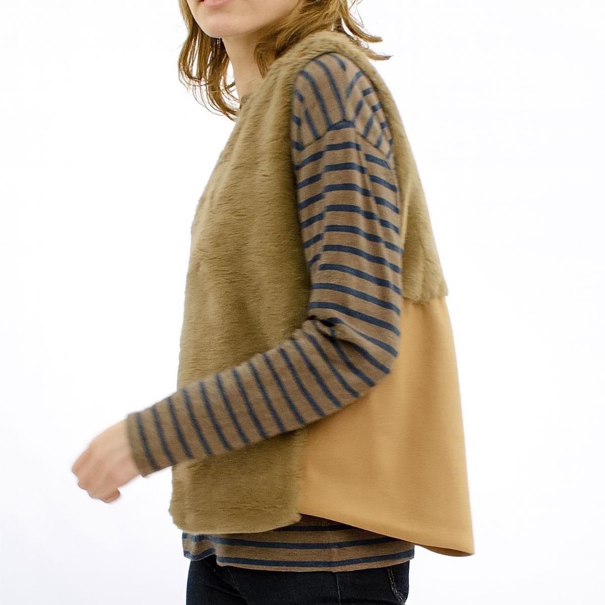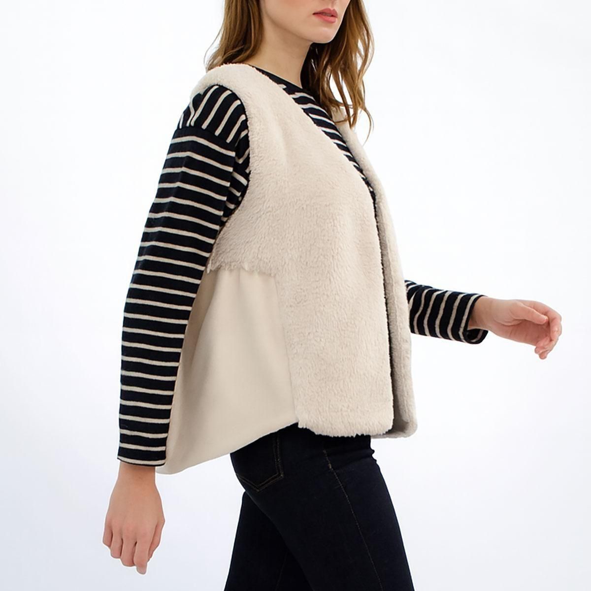 前身頃から後身頃上部分覆うボリューム感のあるフェイクファー。