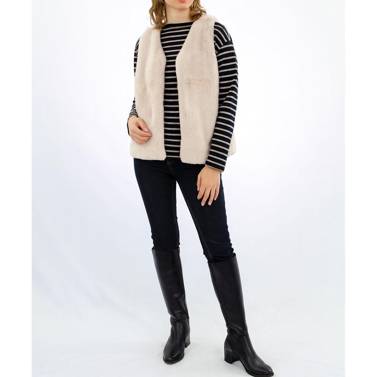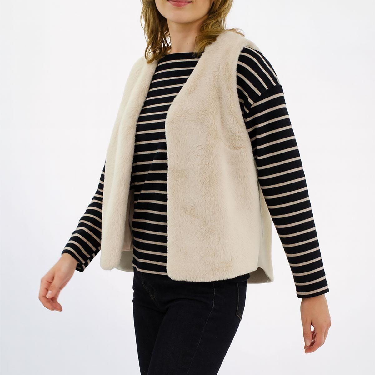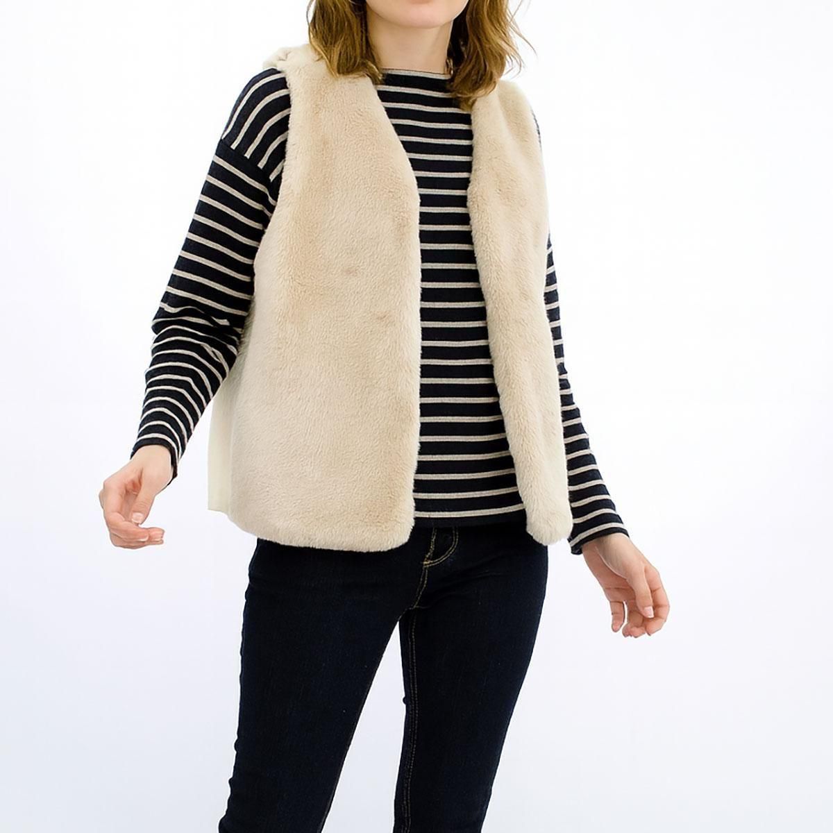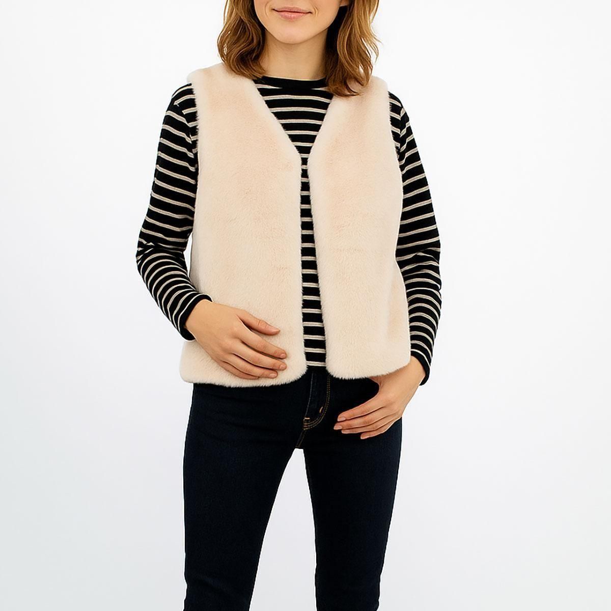 Aライン・前後差・異素材切替・ふわふわフェイクファーベスト