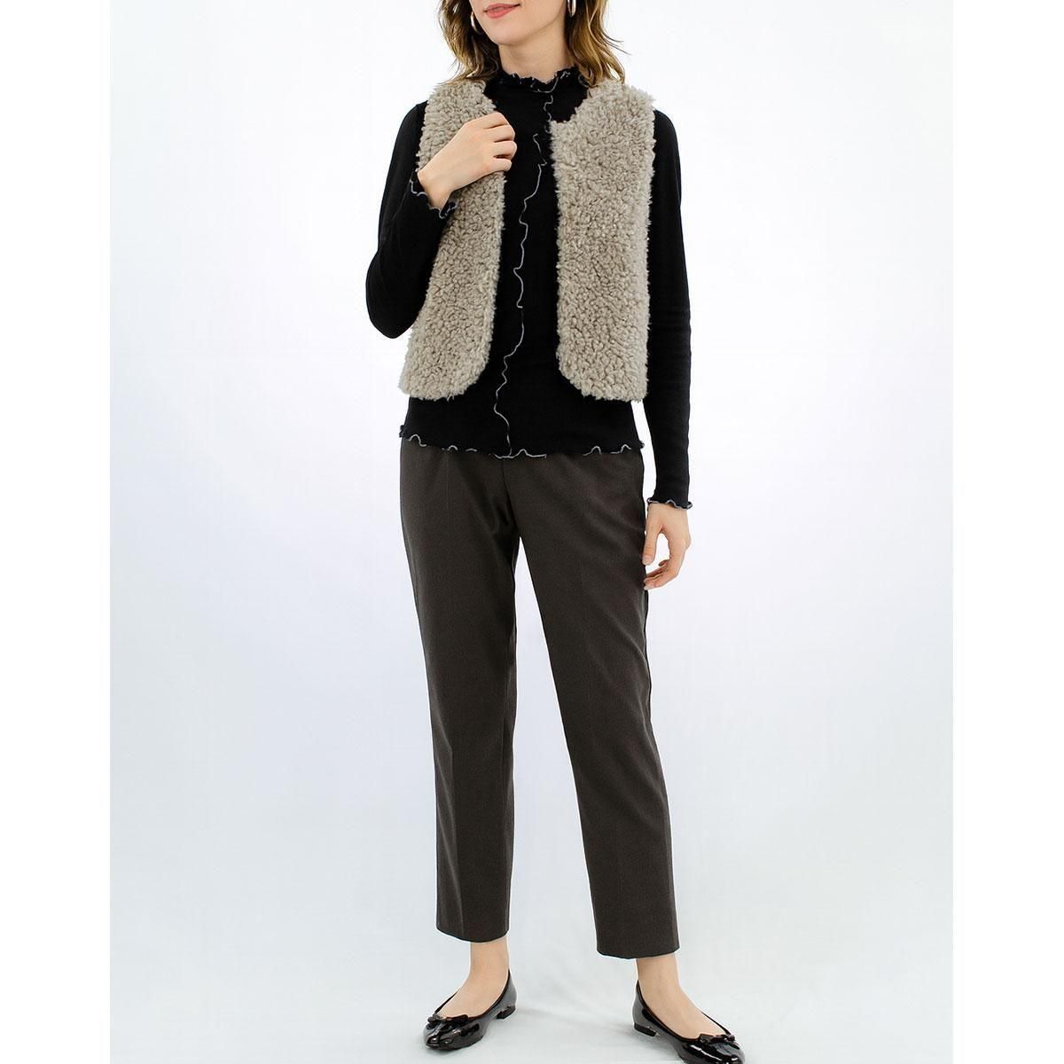 シンプルなコーディネートも、このベストをプラスするだけで一気にトレンド感がアップします。