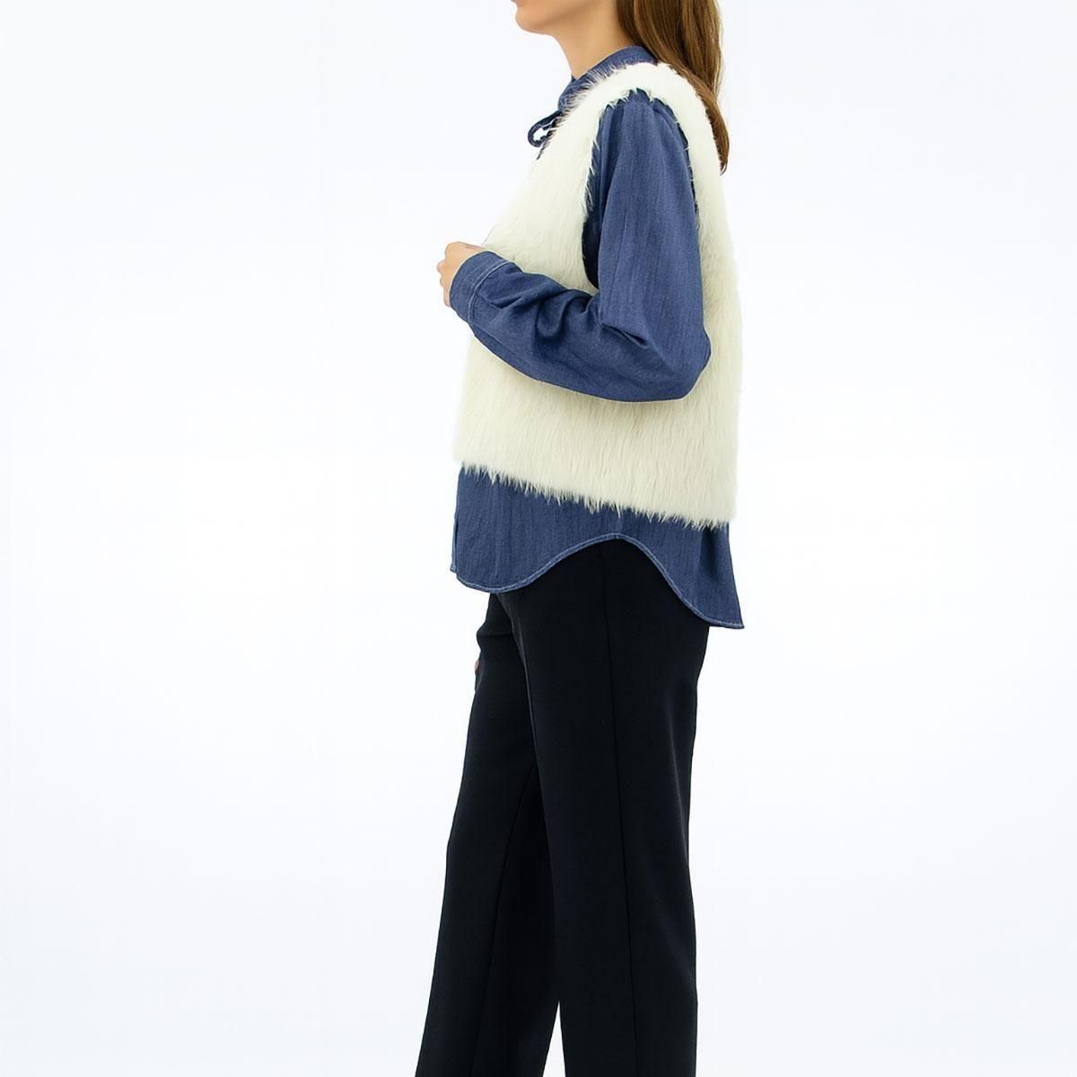Vネックのデザインなので、すっきりとした印象になり、タートルネックやシャツと好相性。