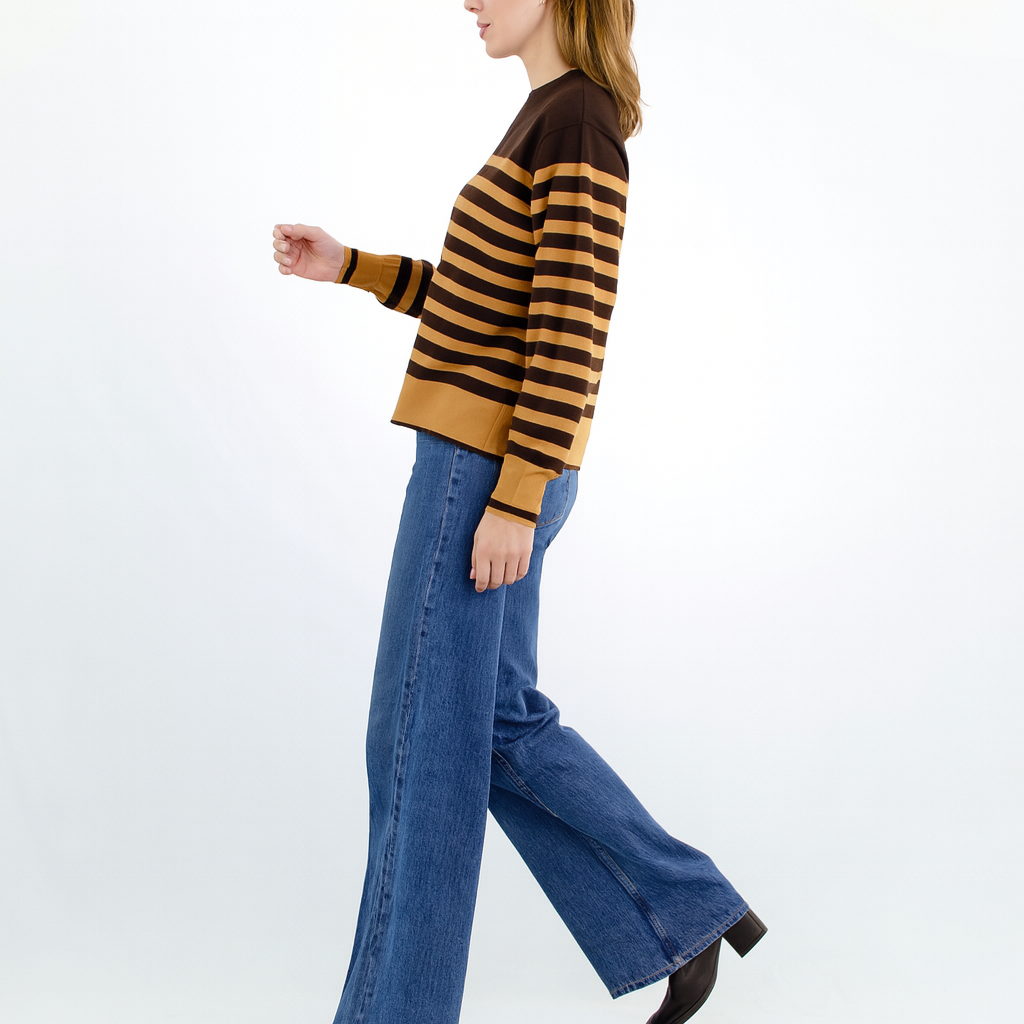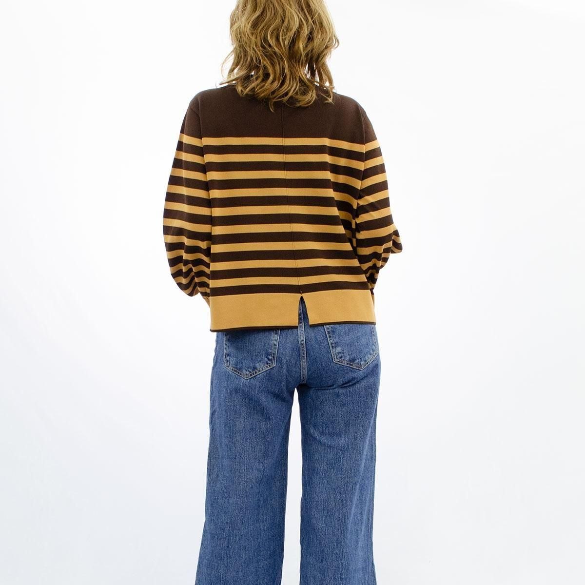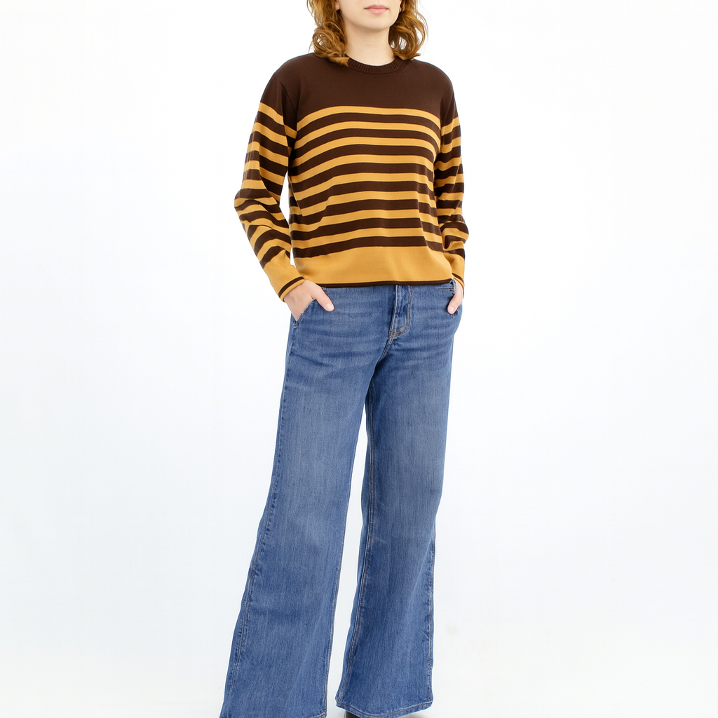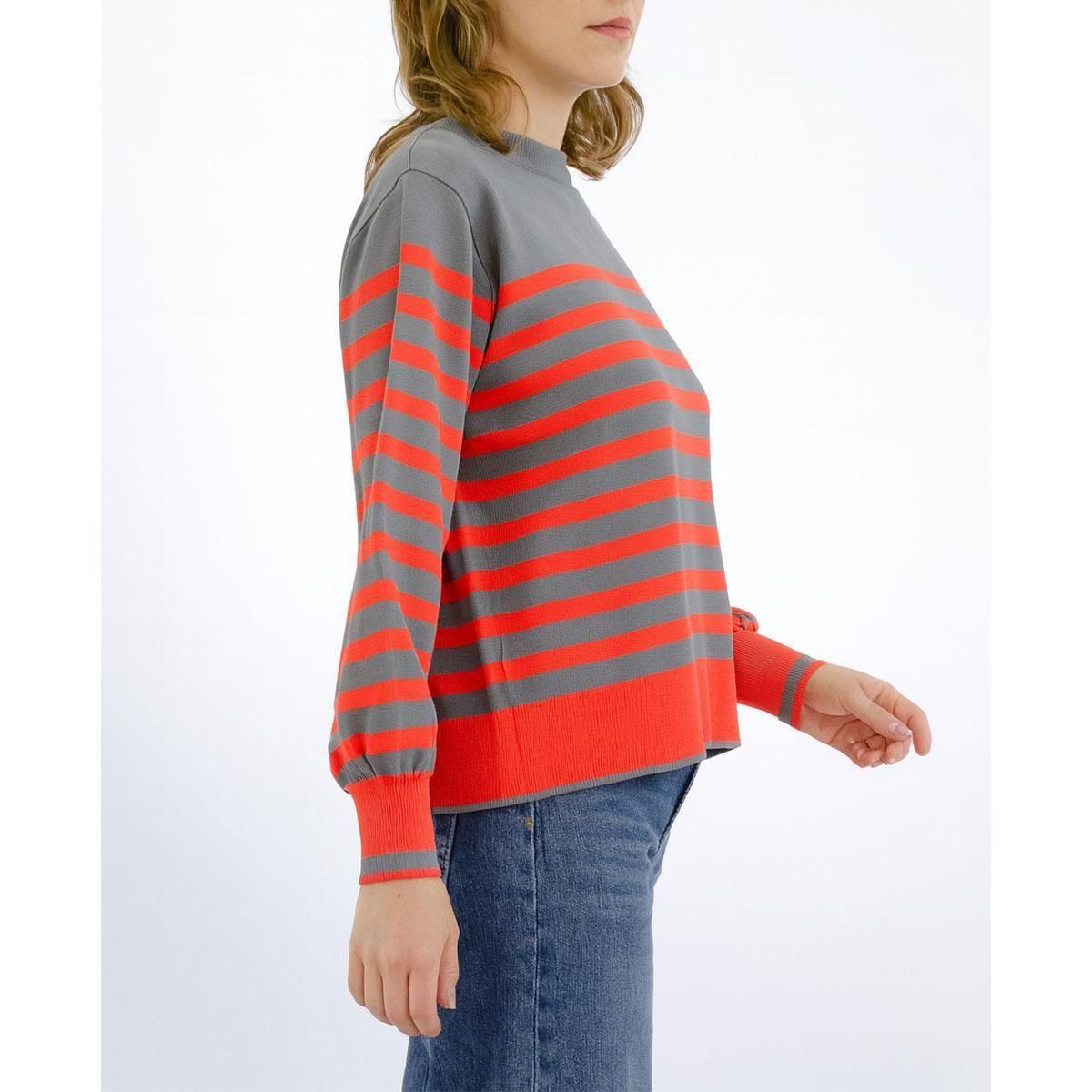 大胆な配色ボーダーが目を引く、存在感のあるニットです。
