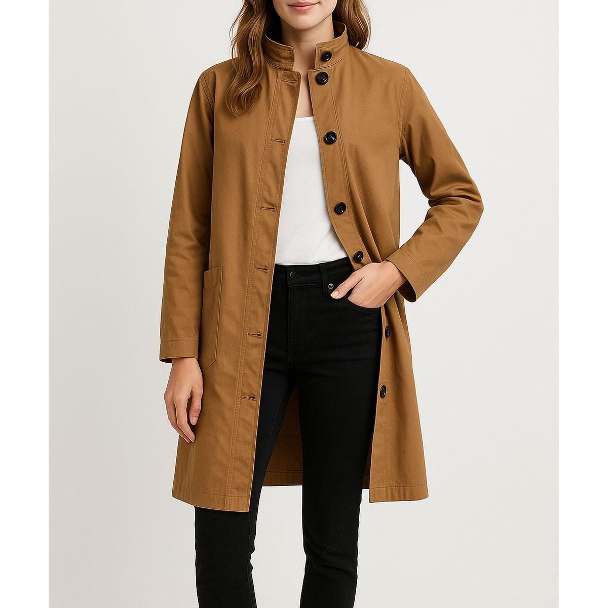 首元をすっきりと見せるスタンドカラーは、インナーのタートルネックやマフラーとも相性が抜群。