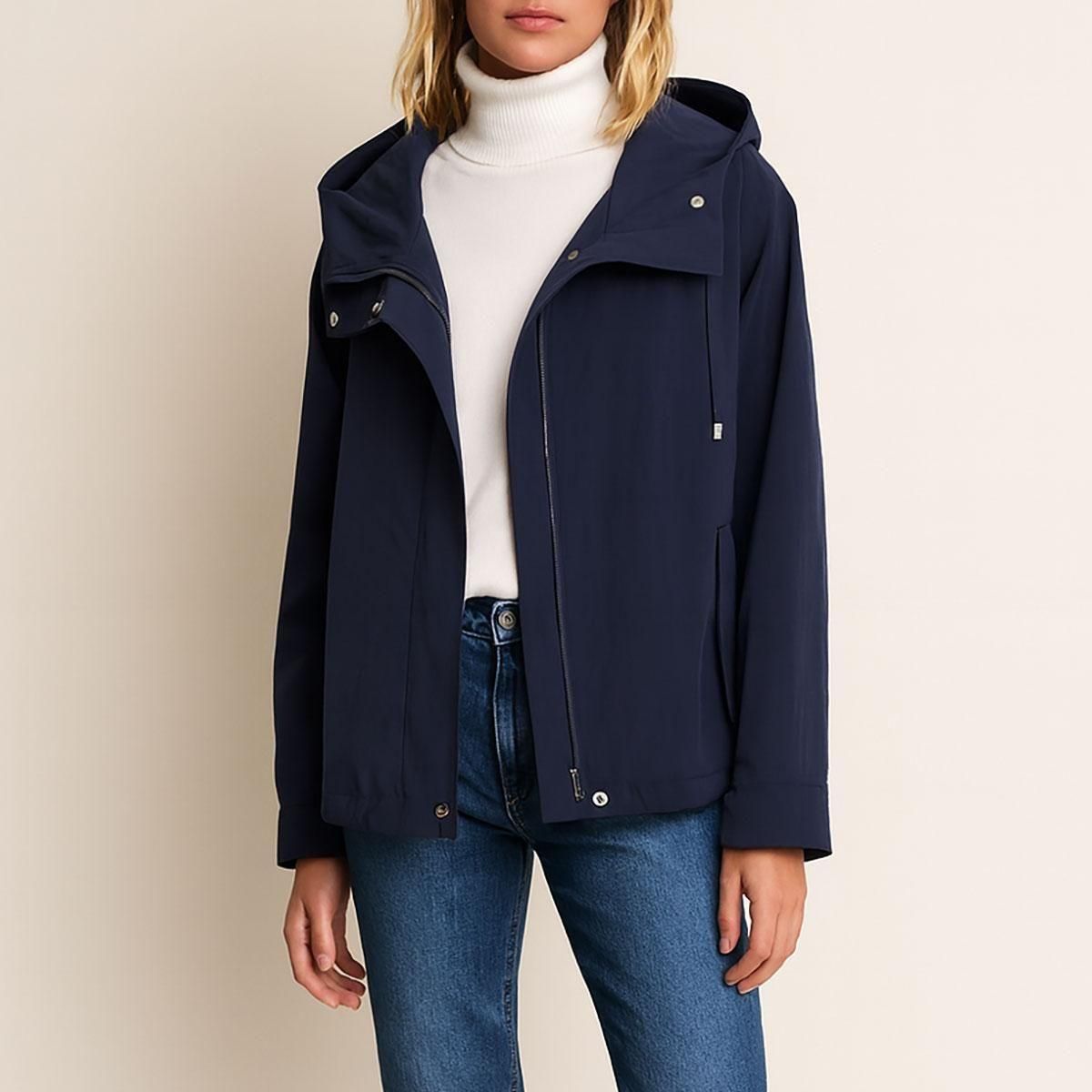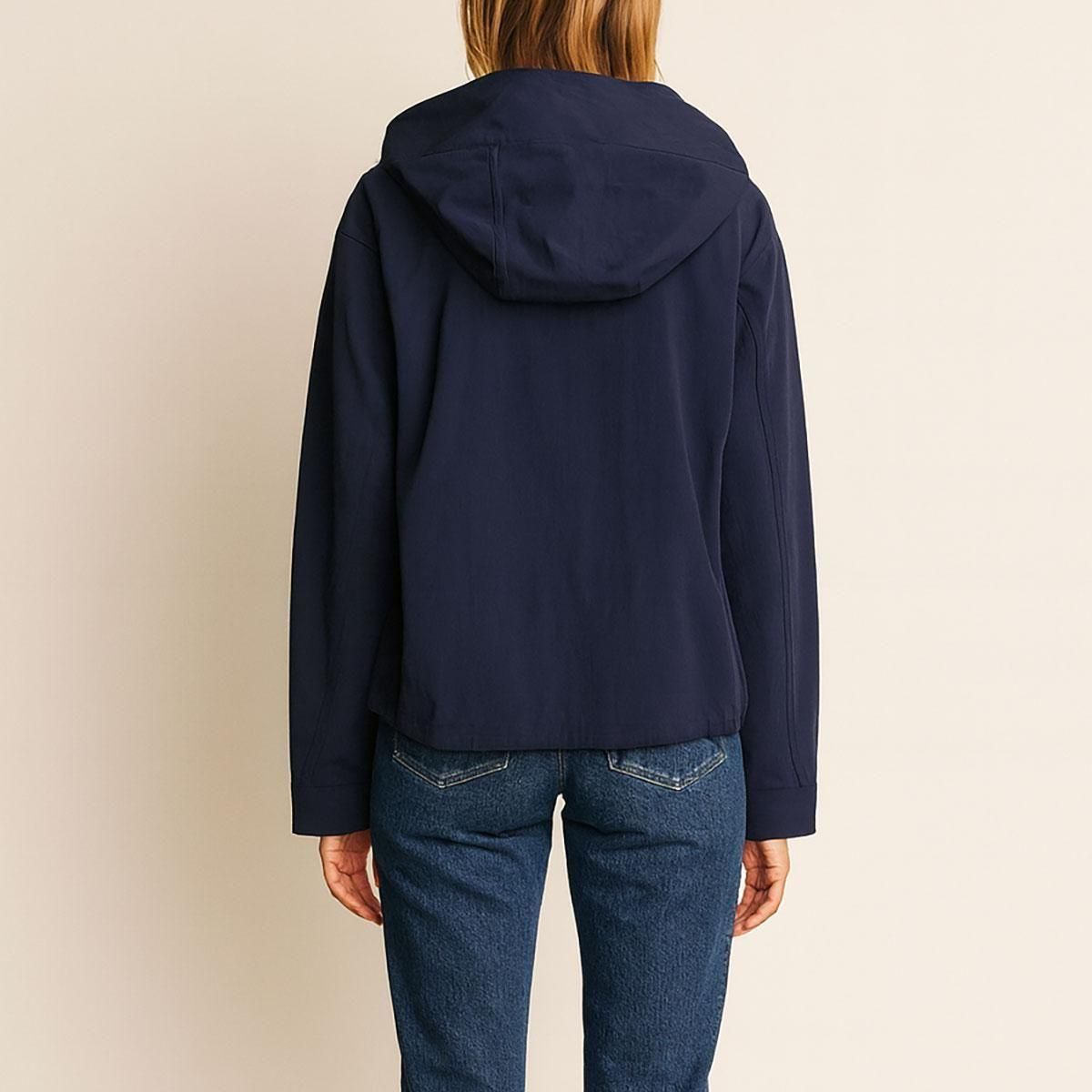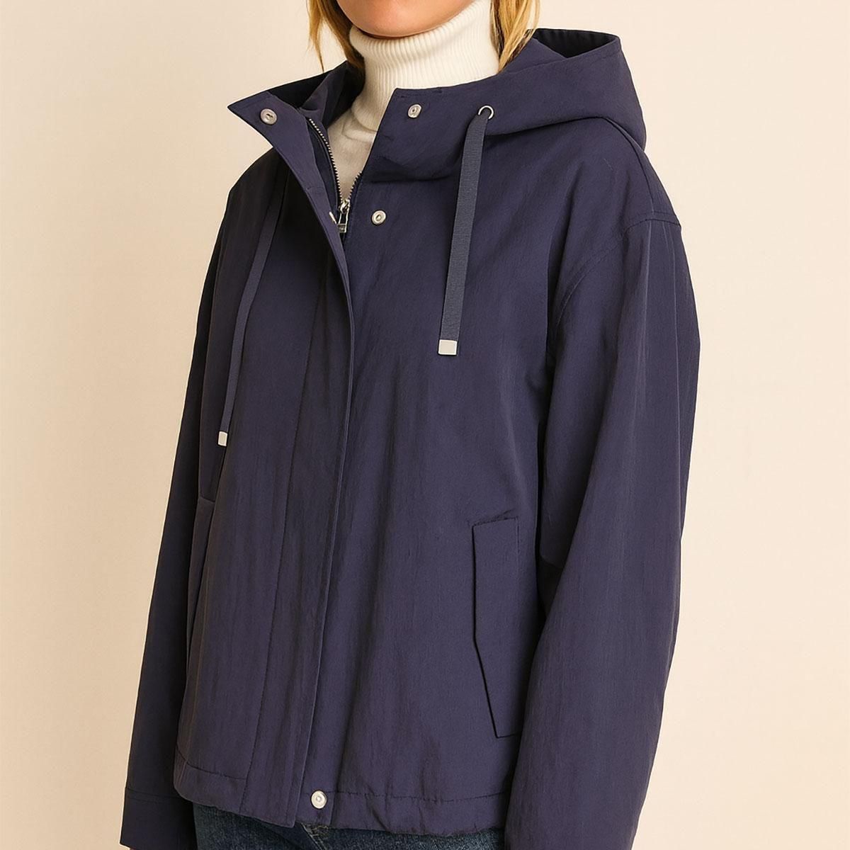 フロントはジップデザインと上下にスナップ釦を使用、裾は、ドロスト仕様で程よくフィット感のあるシルエットに仕上げました。
