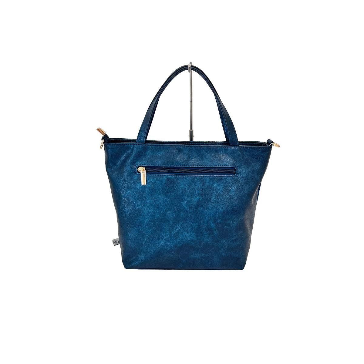 バッグの背面は質感の良いフェイクレザーになっており、サッと取り出したいアイテムの収納に重宝するファスナー付きポケットを配置。