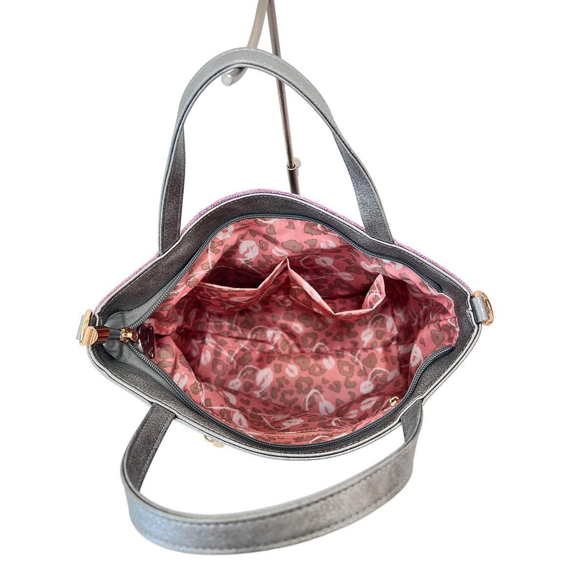 バッグを開けば、バッグの色に合わせた柄の裏地が広がり、見えないところまでキュートなデザイン。