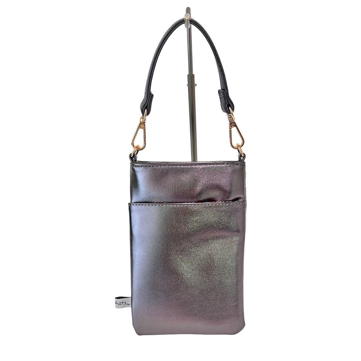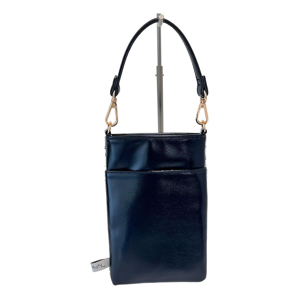 背面は、上品な光沢のある質感の良いフェイクレザーになっており、サッと取り出したいアイテムの収納に便利なオープンポケットが付いています。