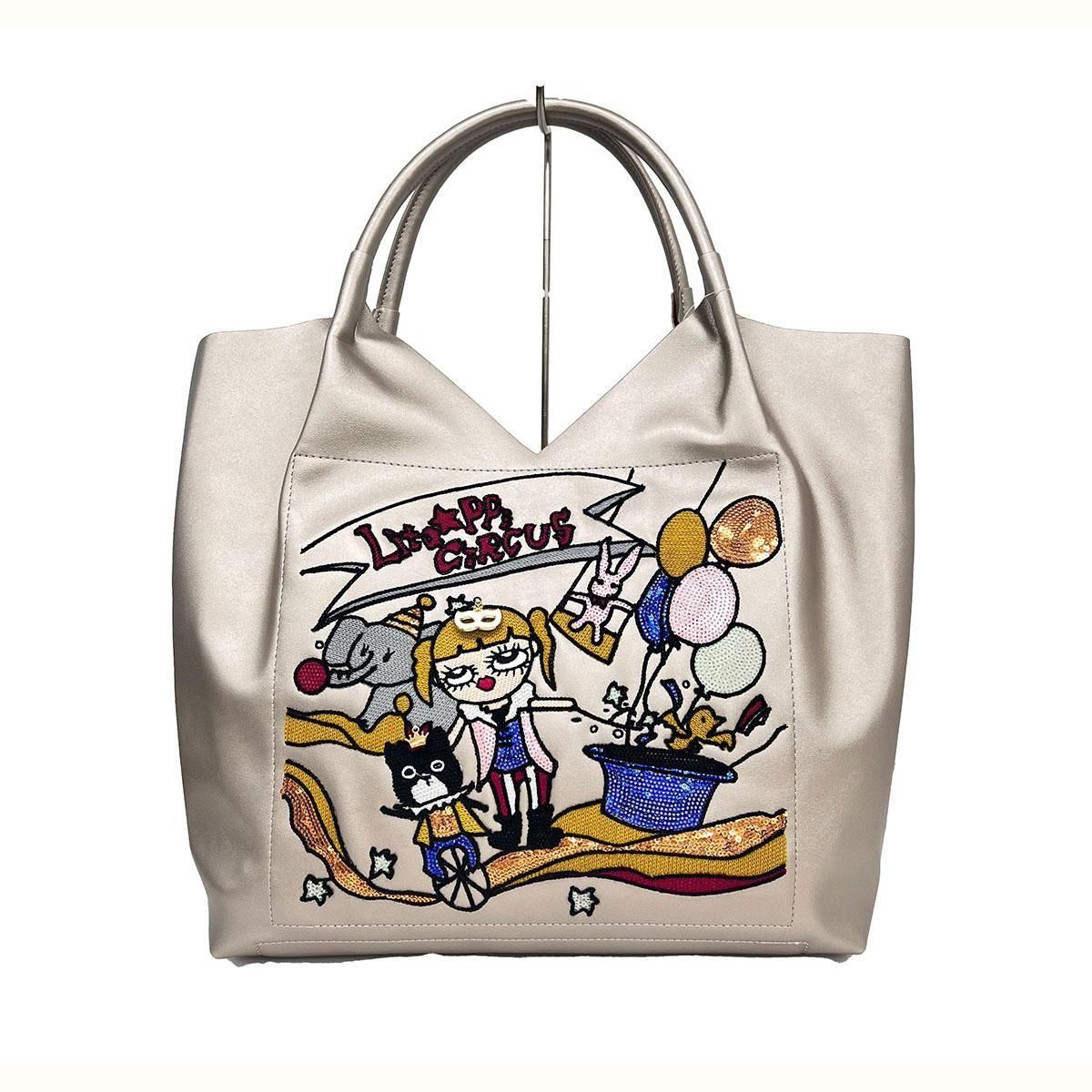スパンコール・刺繍・フェイクレザートートバッグ