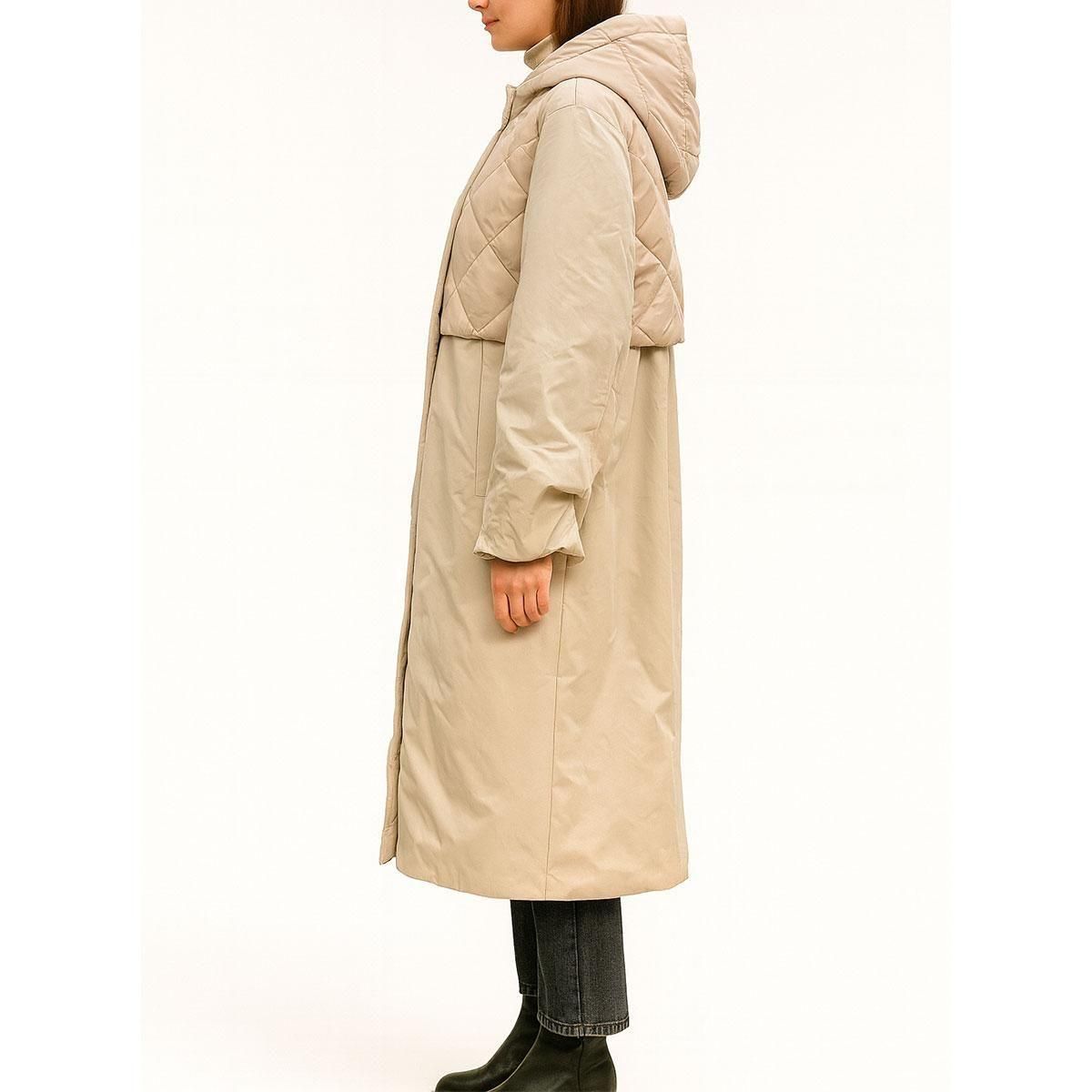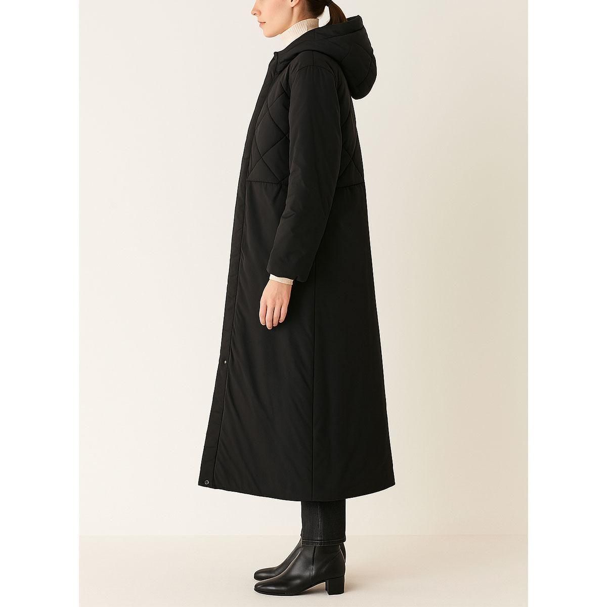 キルティング×スムース切り替えロングコート