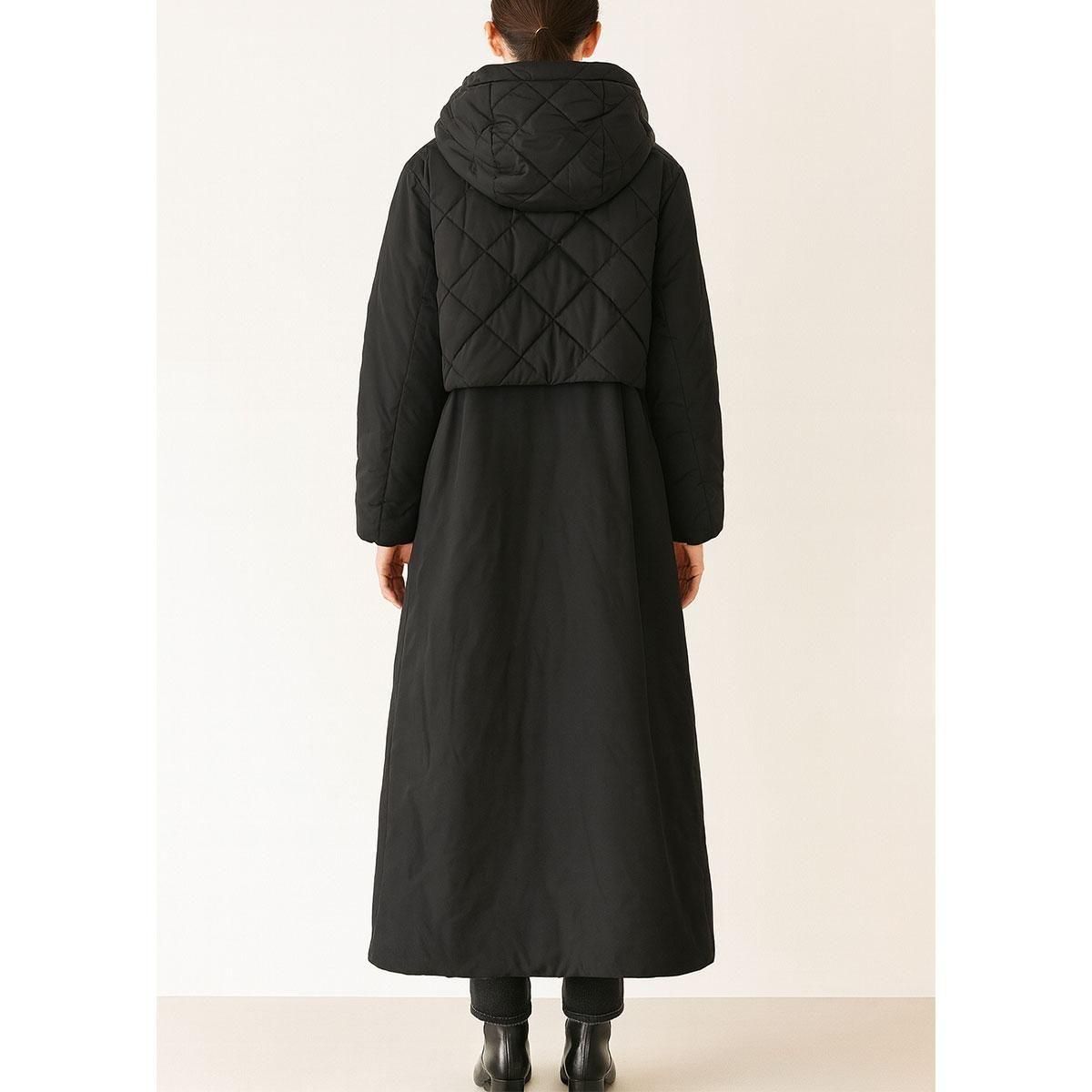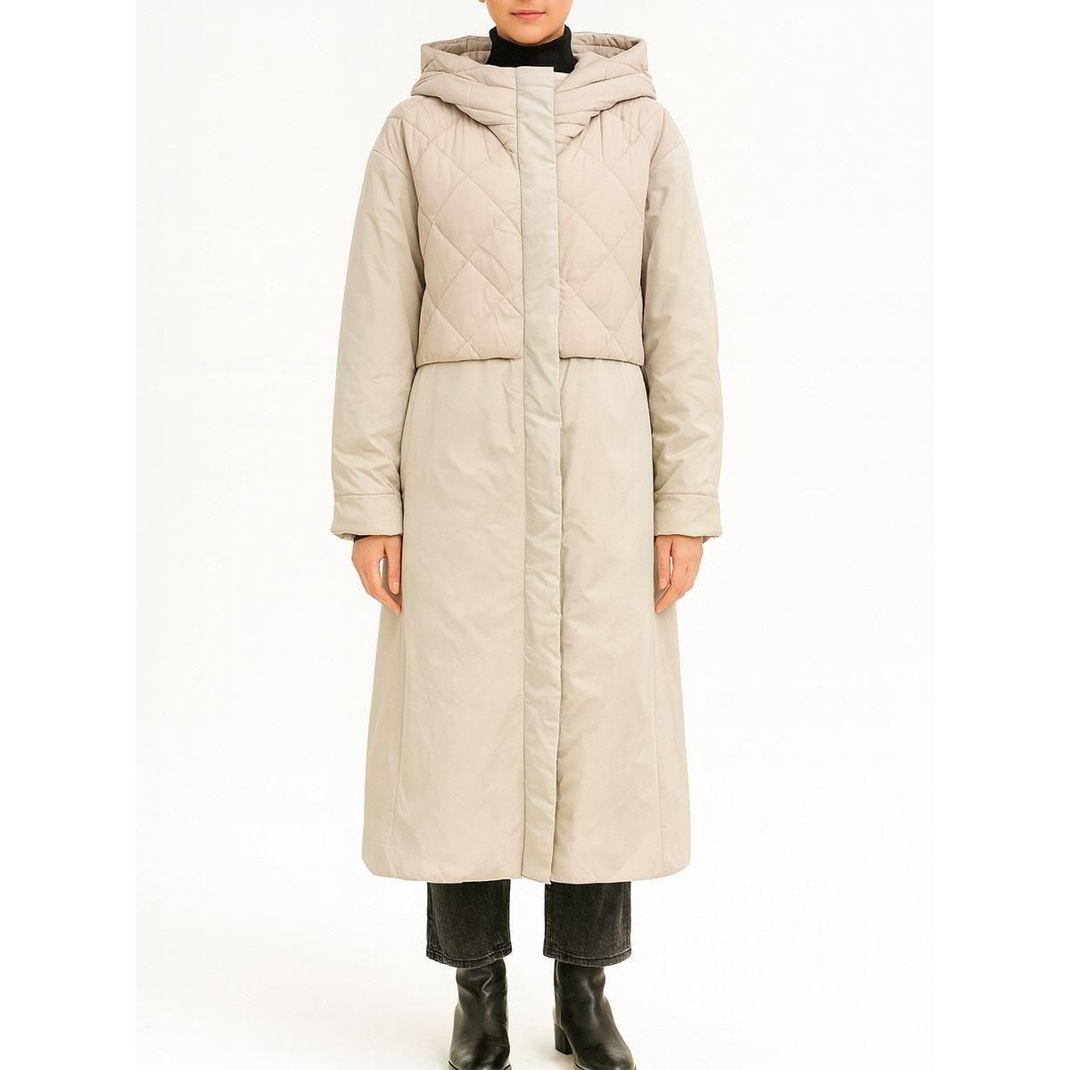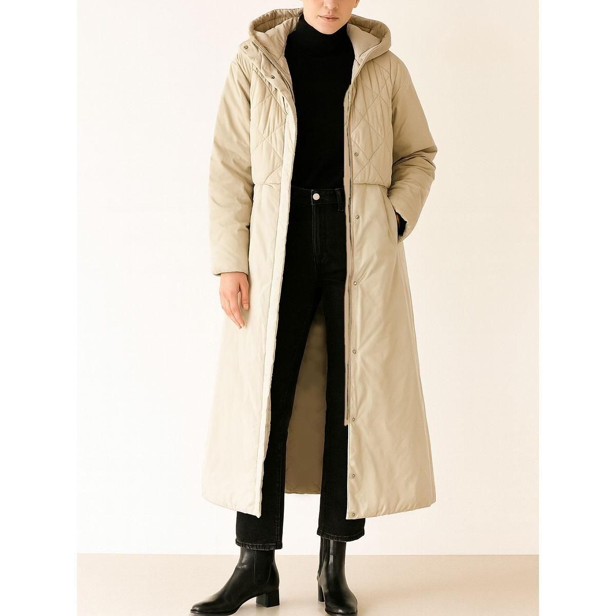 フードと肩周りにはダイヤ型キルティングを施し、立体感と防寒性を両立。