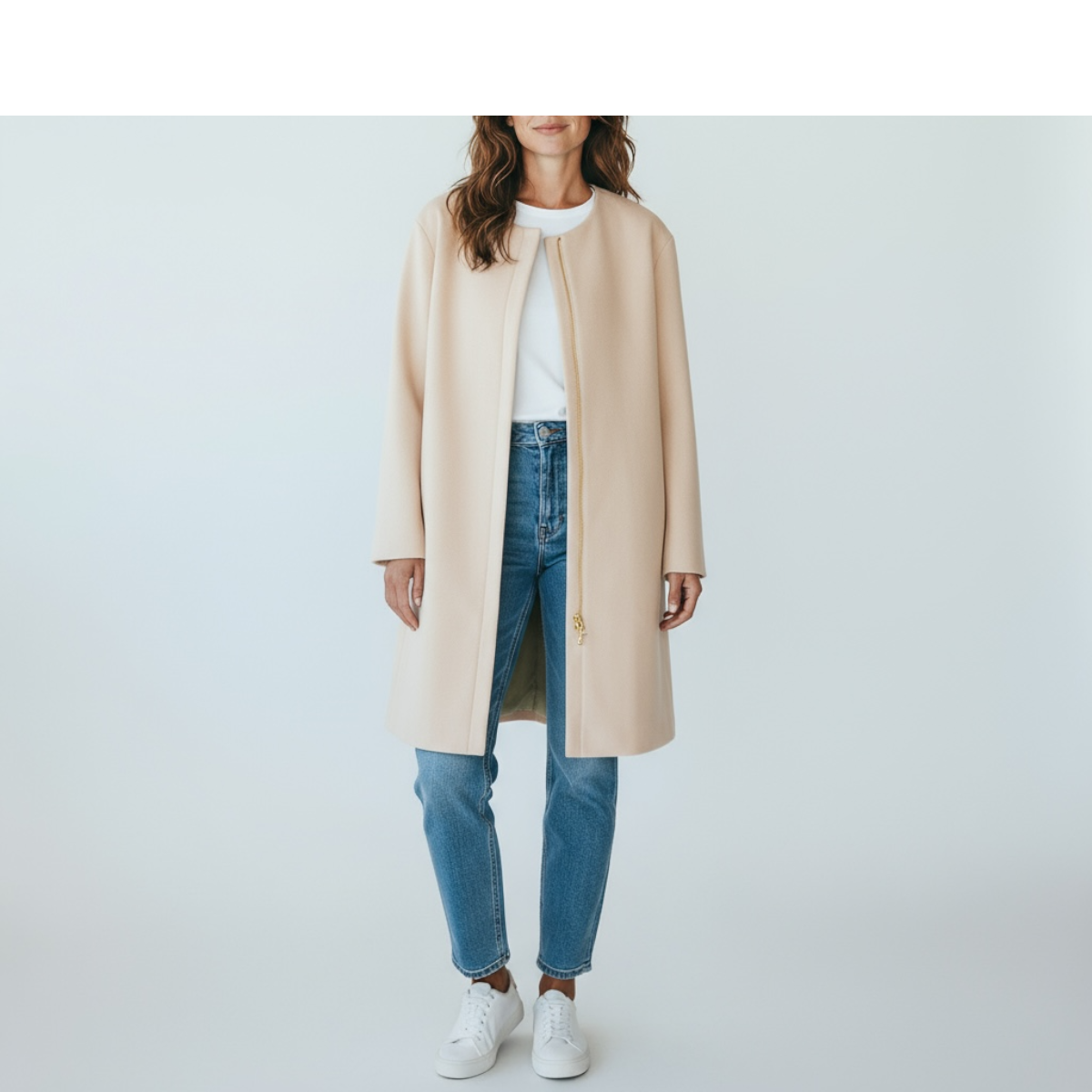 シワになりにくく、軽やかで上品さを兼ね備えた頼れる一着です。
