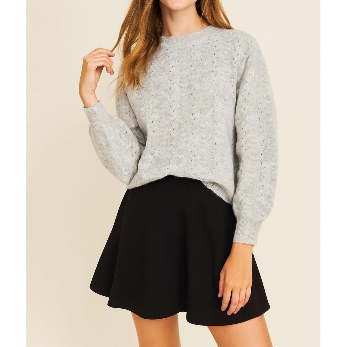 細かなケーブル柄が立体感を生み、シンプルながら上品な表情を演出してくれます。