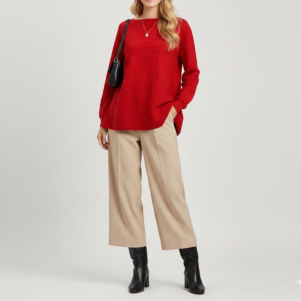 リブテクスチャー・Aラインニットプルオーバー