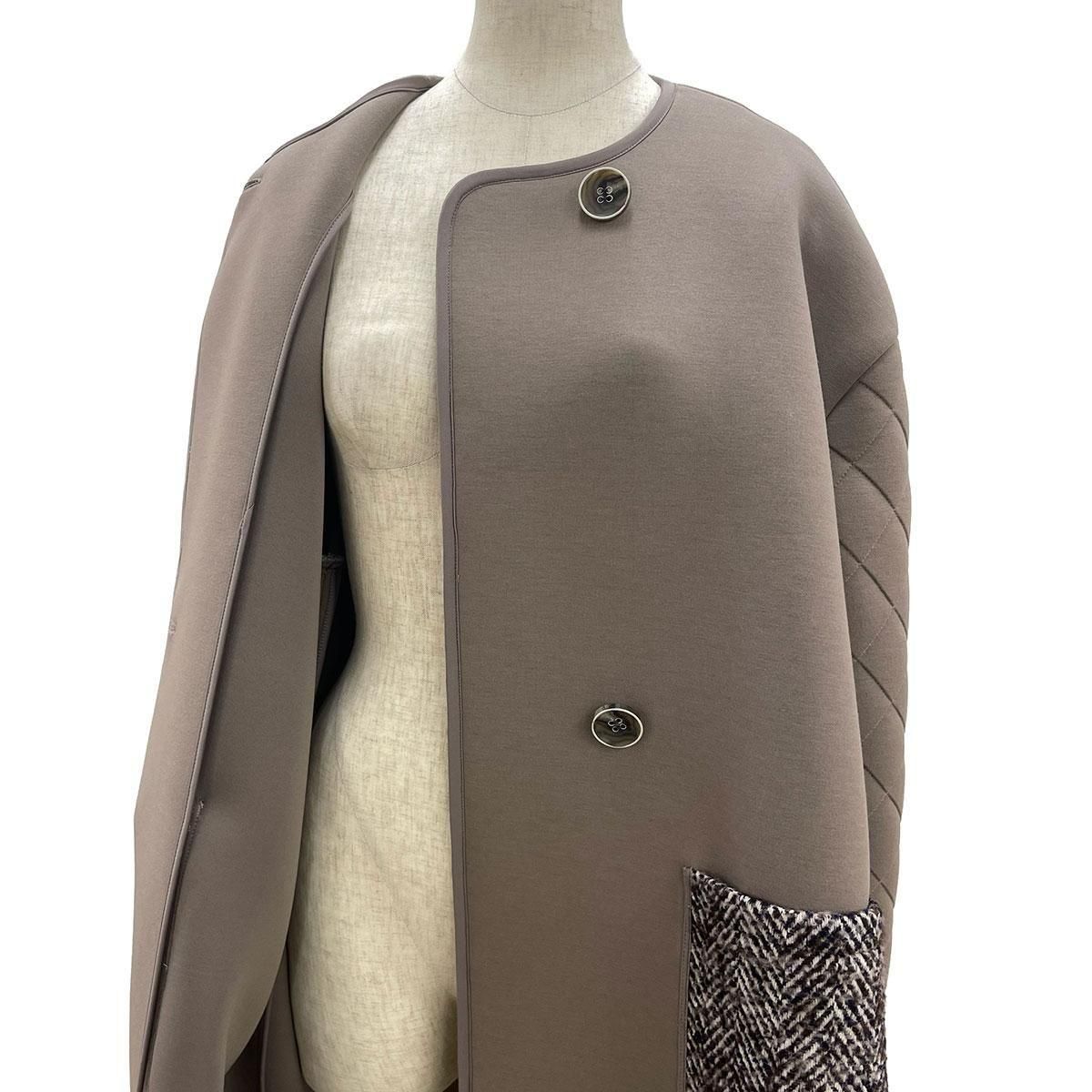キルティングスリーブ・ツイードポケット ノーカラーコート 795502